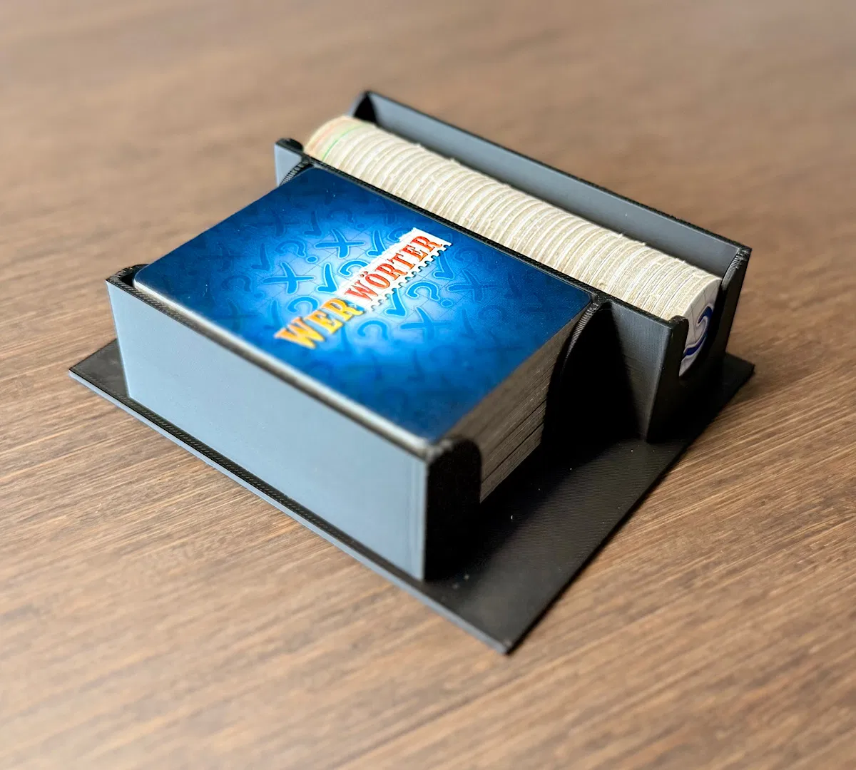Nếu bạn là một người yêu thích bộ trò chơi board game Werwörter của Ravensburger, thì chắc chắn bạn sẽ hiểu cảm giác khó chịu khi các lá bài và token bị lộn xộn mỗi khi mở hộp. Chiếc khay in 3D này được thiết kế chuyên biệt như một phụ kiện hỗ trợ (inlay) giúp bạn sắp xếp gọn gàng tất cả các thành phần trong bộ game một cách khoa học nhất. Với thiết kế tối giản, khay này không chỉ giữ mọi thứ ngăn nắp mà còn bảo vệ các thành phần game khỏi tình trạng bị thất lạc hoặc hư hại trong quá trình di chuyển hay lưu trữ.