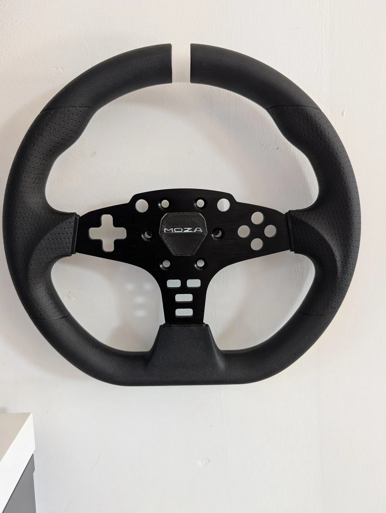 Sản phẩm gồm hai phần chính: một tấm đế bắt vít chắc chắn vào tường và phần ngàm treo mô phỏng trục gắn của base Moza. Cách sử dụng cực kỳ đơn giản, anh em chỉ cần bắt vít tấm đế lên vị trí mong muốn, sau đó là có thể dễ dàng treo hoặc tháo vô lăng ra bất cứ lúc nào. Không chỉ giúp tiết kiệm diện tích, giá treo này còn biến chiếc vô lăng thành một món đồ trang trí đầy phong cách cho góc chơi game, tạo cảm giác chuyên nghiệp giống như trong các garage xe đua thực thụ.