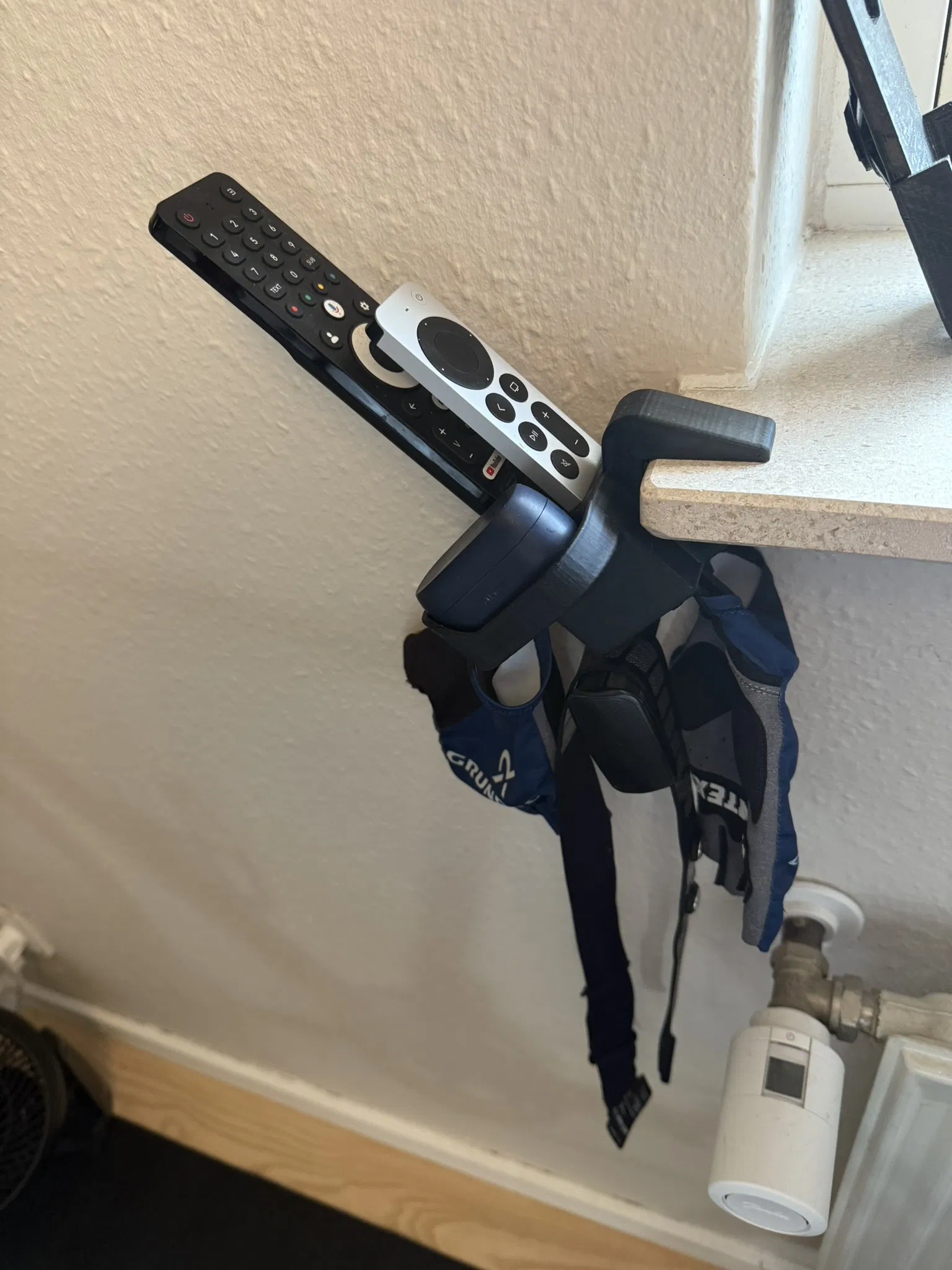 Mình đã tự thiết kế một chiếc khay để sắp xếp remote, cảm biến nhịp tim, găng tay và tai nghe cho góc tập Zwift của mình.