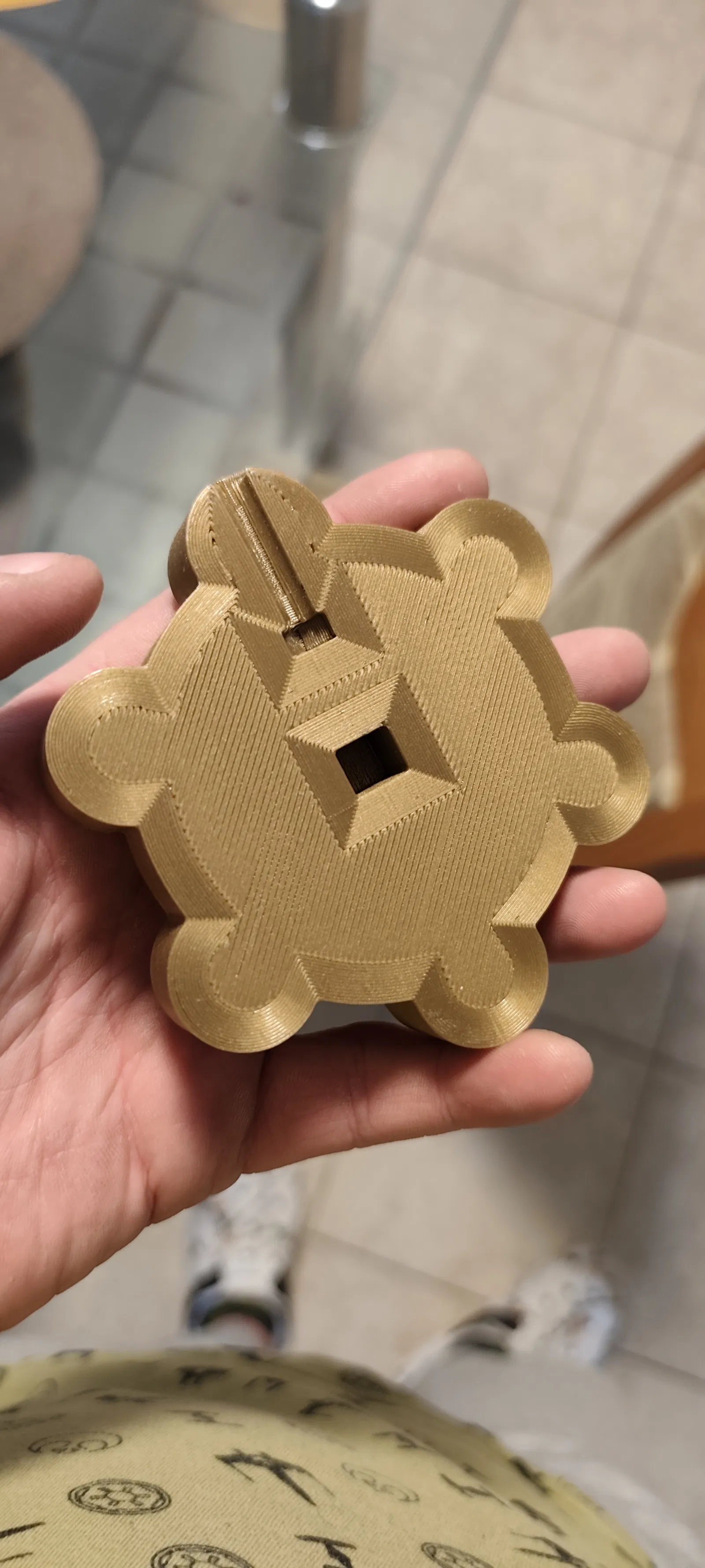 • Hướng đặt: Nên đặt mặt phẳng của núm vặn xuống bàn in để tăng độ bám dính, không cần dùng nhiều hỗ trợ (support) để bề mặt hoàn thiện được đẹp nhất.