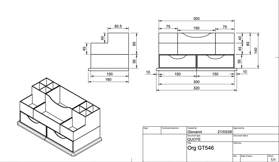 Bạn đang tìm kiếm một giải pháp để sắp xếp bàn làm việc hay góc trang điểm trở nên gọn gàng và khoa học hơn? Khay đựng đồ đa năng Organizer GT546 chính là lựa chọn lý tưởng dành cho bạn. Với thiết kế thông minh tích hợp nhiều ngăn chứa và hai ngăn kéo tiện lợi, mẫu khay này giúp bạn dễ dàng phân loại và quản lý từ đồ dùng văn phòng cho đến phụ kiện trang điểm nhỏ nhất. Sản phẩm không chỉ giúp tối ưu không gian mà còn mang lại vẻ hiện đại, tinh tế cho góc làm việc của bạn. Được thiết kế tối ưu cho in 3D, mẫu Organizer GT546 dễ dàng in ấn bằng nhựa PLA hoặc PETG, cho độ bền cao và tính thẩm mỹ tuyệt vời. Hãy thử in ngay hôm nay để trải nghiệm sự tiện lợi mà nó mang lại.