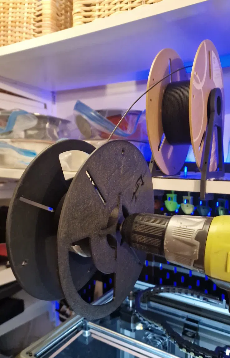 Nếu bạn từng gặp khó khăn vì sự bất ổn định của các cuộn nhựa bằng bìa các-tông, thì phiên bản nâng cấp của giá đỡ cuộn nhựa này chính là dành cho bạn. Mình đã thiết kế lại nó để bạn - với bộ chuyển đổi (adapter) đi kèm - có thể gắn máy khoan vào cuộn nhựa, giúp việc sang chiết nhựa từ các loại cuộn khó nhằn khác trở nên dễ dàng hơn. Phần đế/giá đỡ phù hợp với tấm ván dày 1.6cm (xem hình), nhưng nếu có thêm một chút miếng đệm mềm thì sẽ bám chắc chắn hơn nữa.