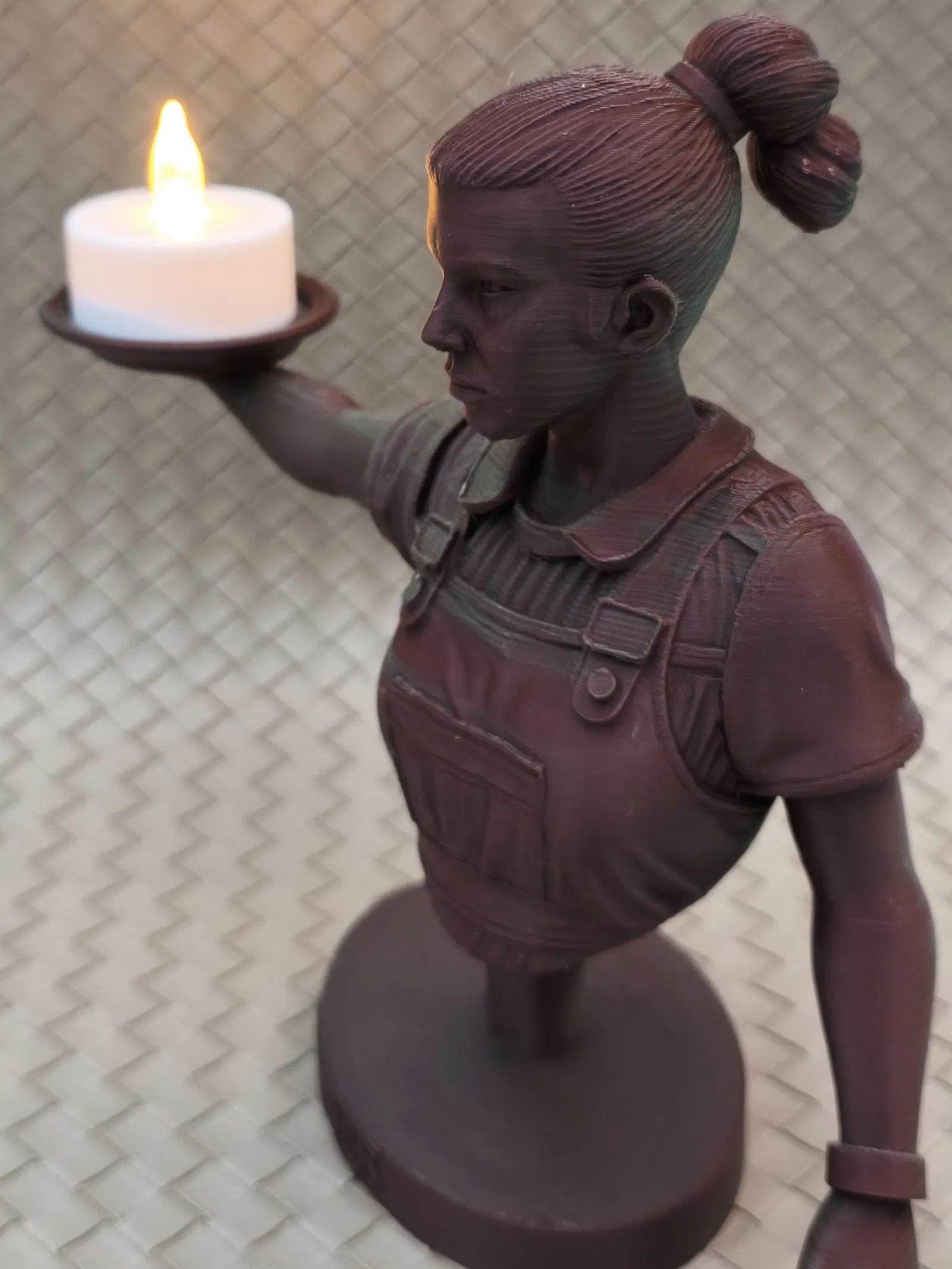 Đế cắm nến LED lấy cảm hứng từ nhân vật Eleven trong Stranger Things, thiết kế cho nến trà đường kính 37mm. Hướng dẫn chi tiết cách thiết lập support và lưu ý khi in bằng nhựa PLA để đạt kết quả tốt nhất.