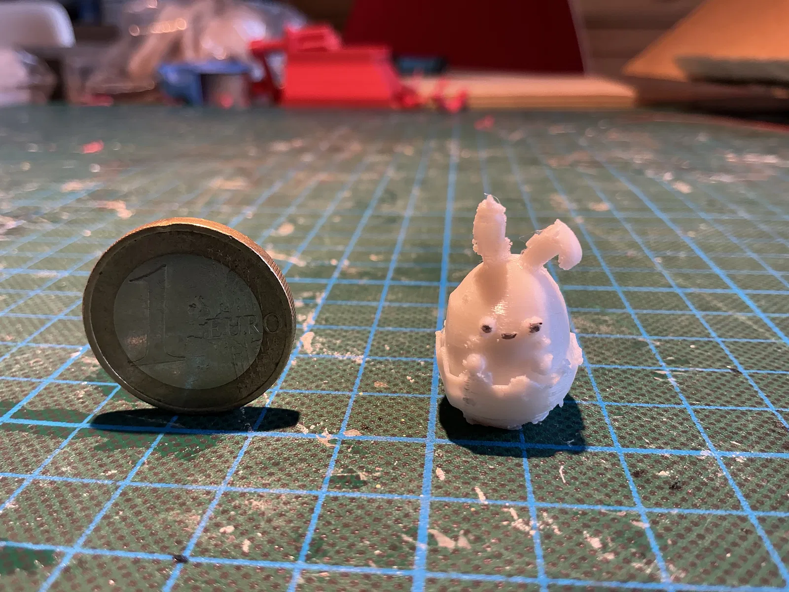 Chào mọi người, hôm nay mình xin giới thiệu đến các bạn một mô hình in 3D cực kỳ đáng yêu và thú vị, đó là chú thỏ Phục Sinh ẩn mình trong vỏ trứng. Đây là một thiết kế nhỏ gọn, tinh tế, mô phỏng hình ảnh một chú thỏ con đang ngộ nghĩnh ló đầu ra từ bên trong quả trứng. Với kích thước tí hon như bạn thấy khi so sánh với đồng xu hay tờ tiền, sản phẩm này thực sự là một vật phẩm trang trí bàn làm việc hoặc góc học tập tuyệt vời cho những ai yêu thích sự nhỏ nhắn, đáng yêu.