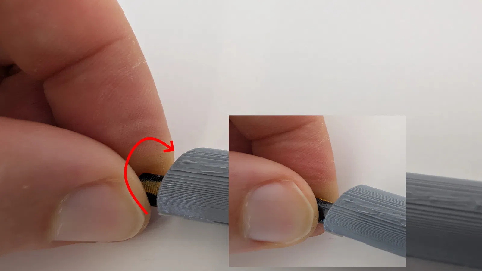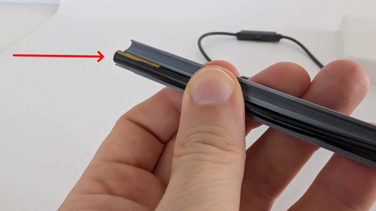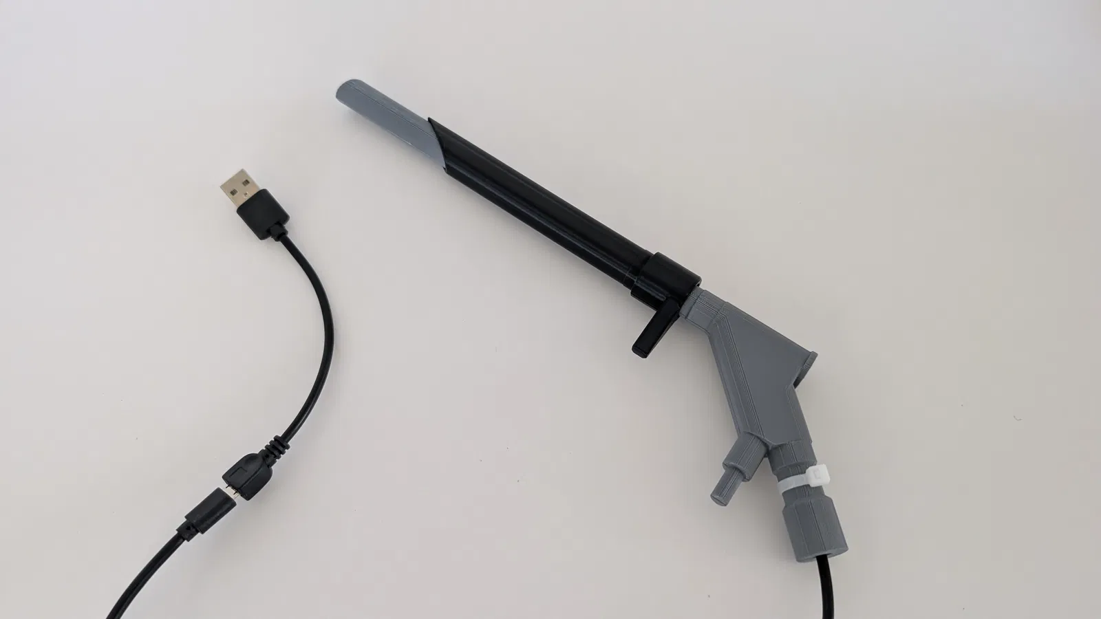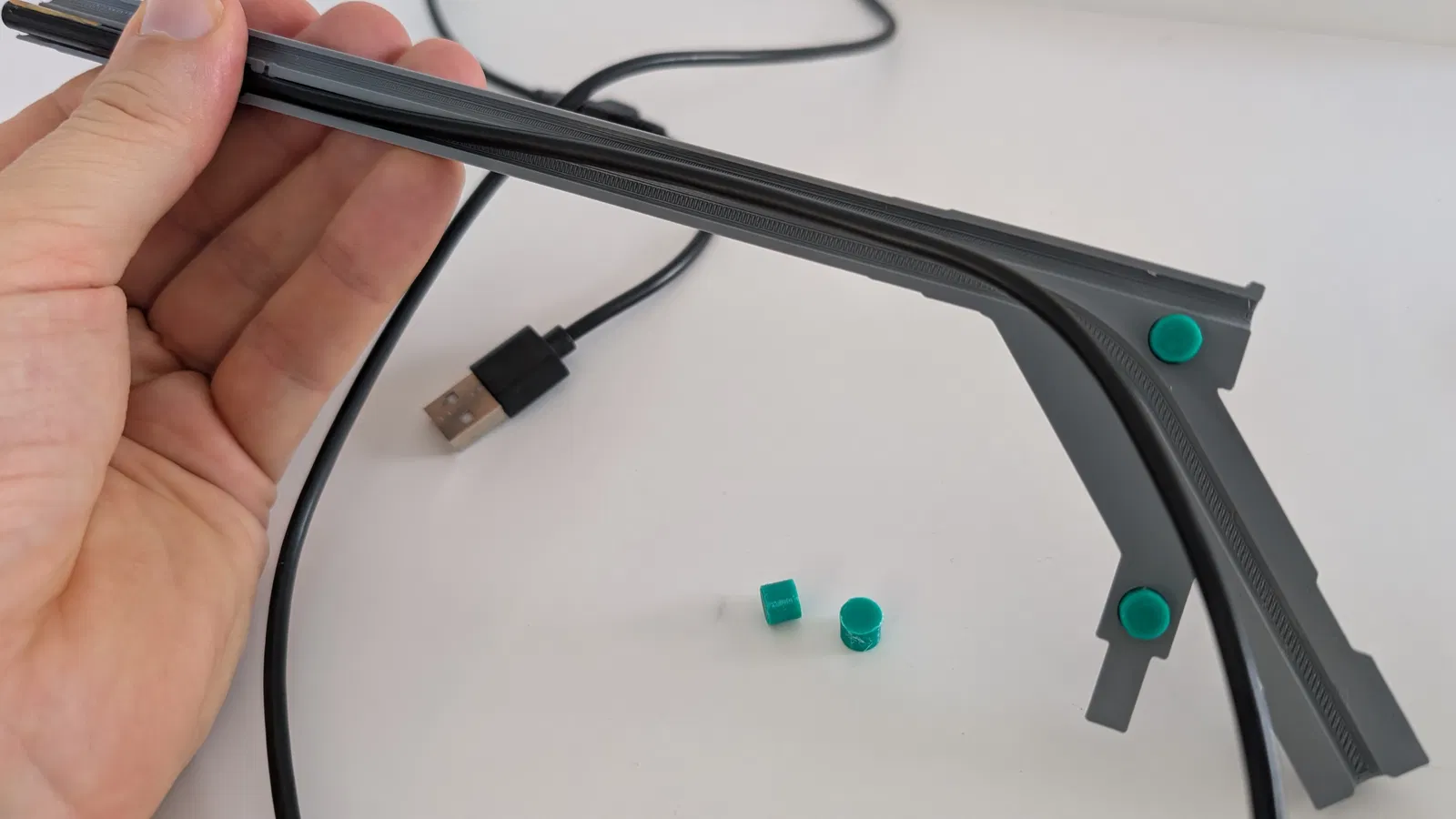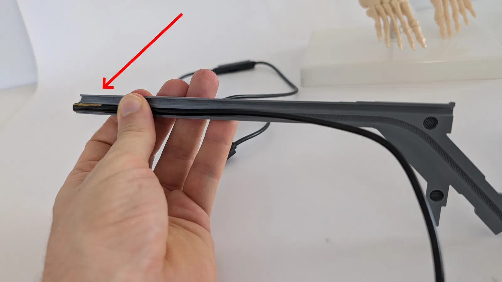 Chèn và điều chỉnh camera nội soi USB 5 mm và cáp của nó vào vỏ in 3D như hình minh họa.