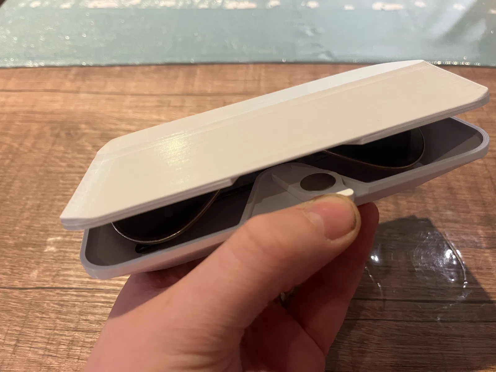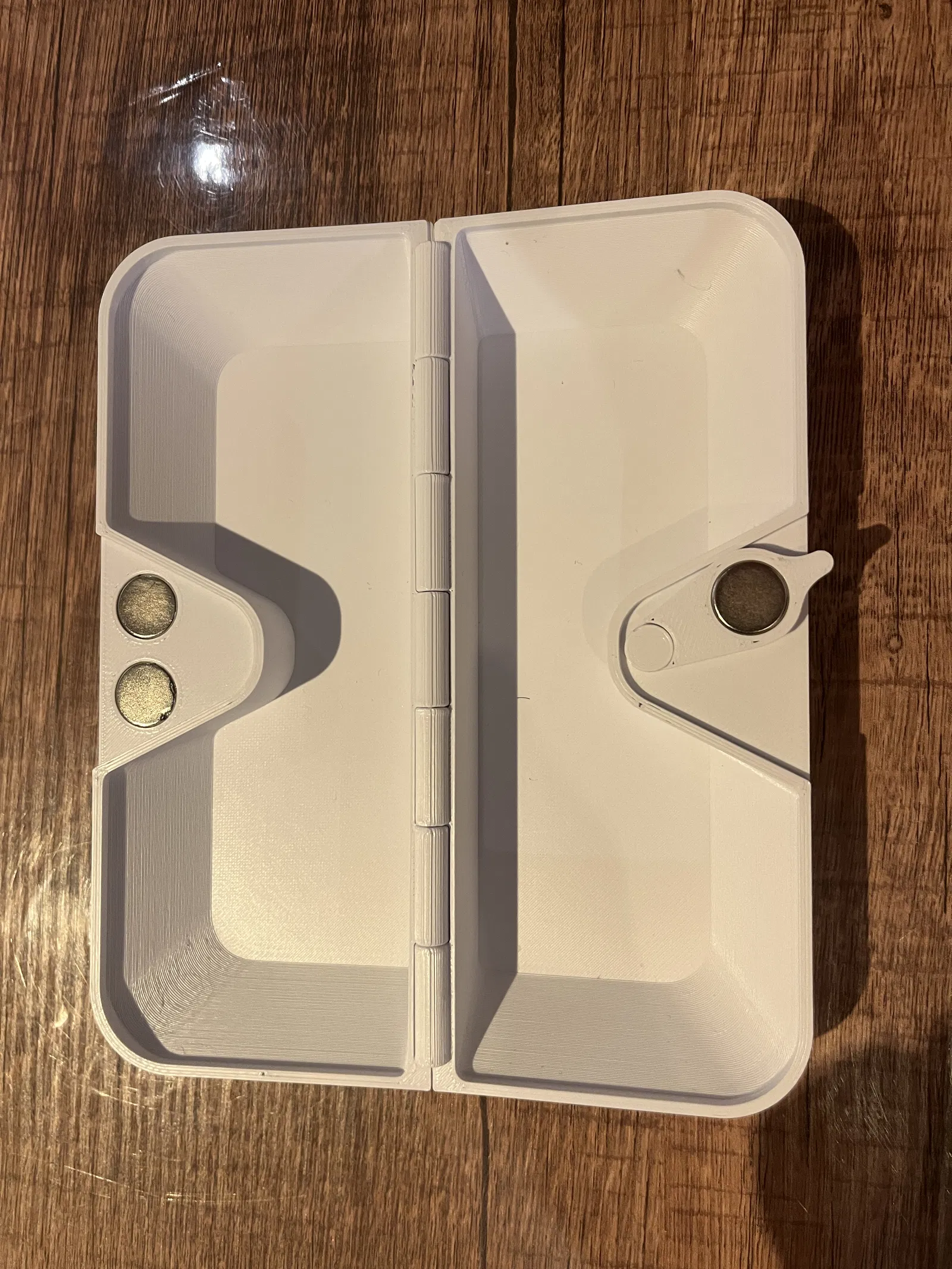Chiếc hộp có thiết kế tinh gọn và đầy đủ công năng, với cơ chế chốt nam châm giúp bạn dễ dàng mở bằng một tay. Hộp được in từ 4 phần riêng biệt và chỉ cần lắp ráp với 3 viên nam châm cùng một đoạn dây nhựa thừa làm bản lề.