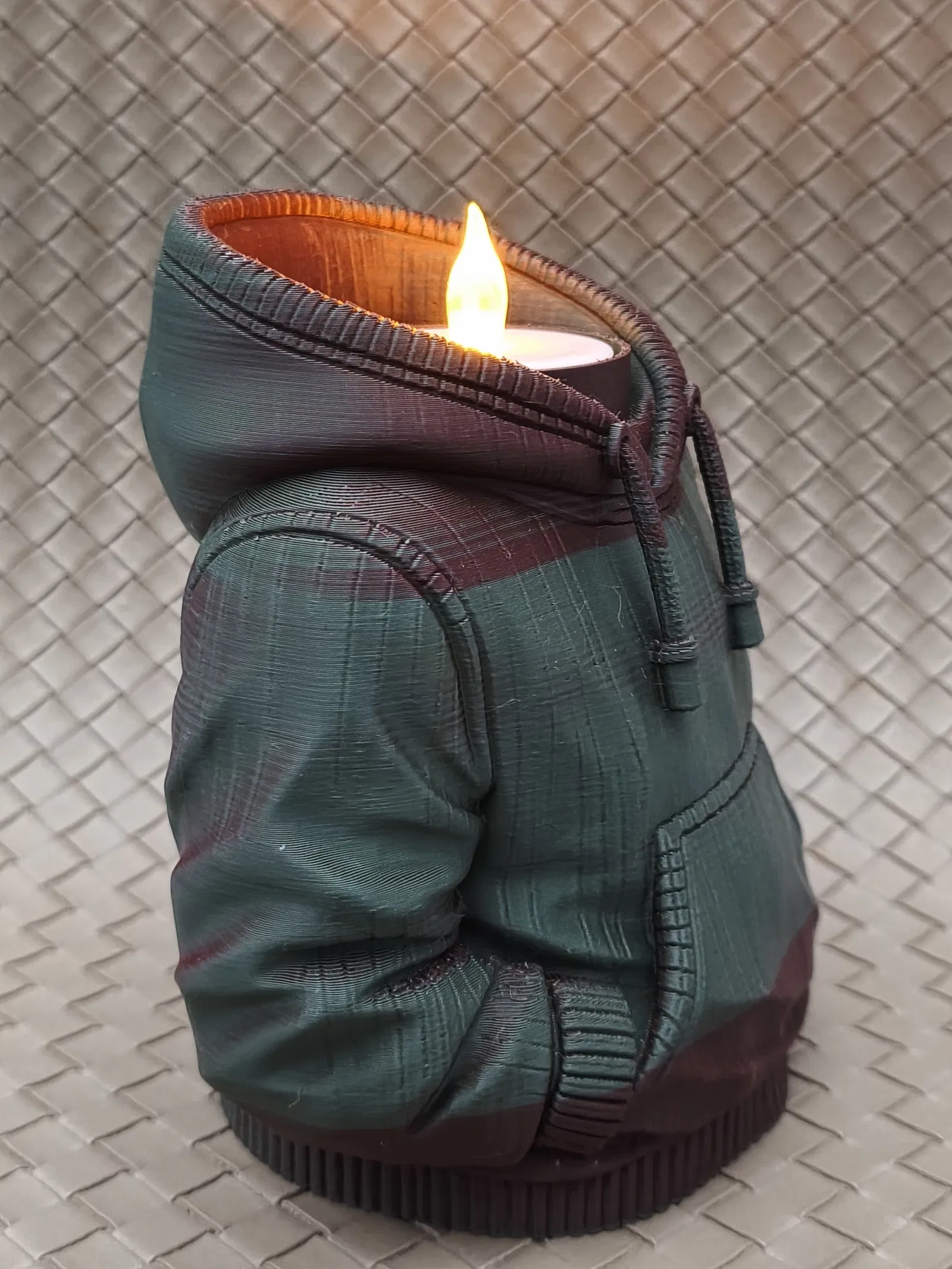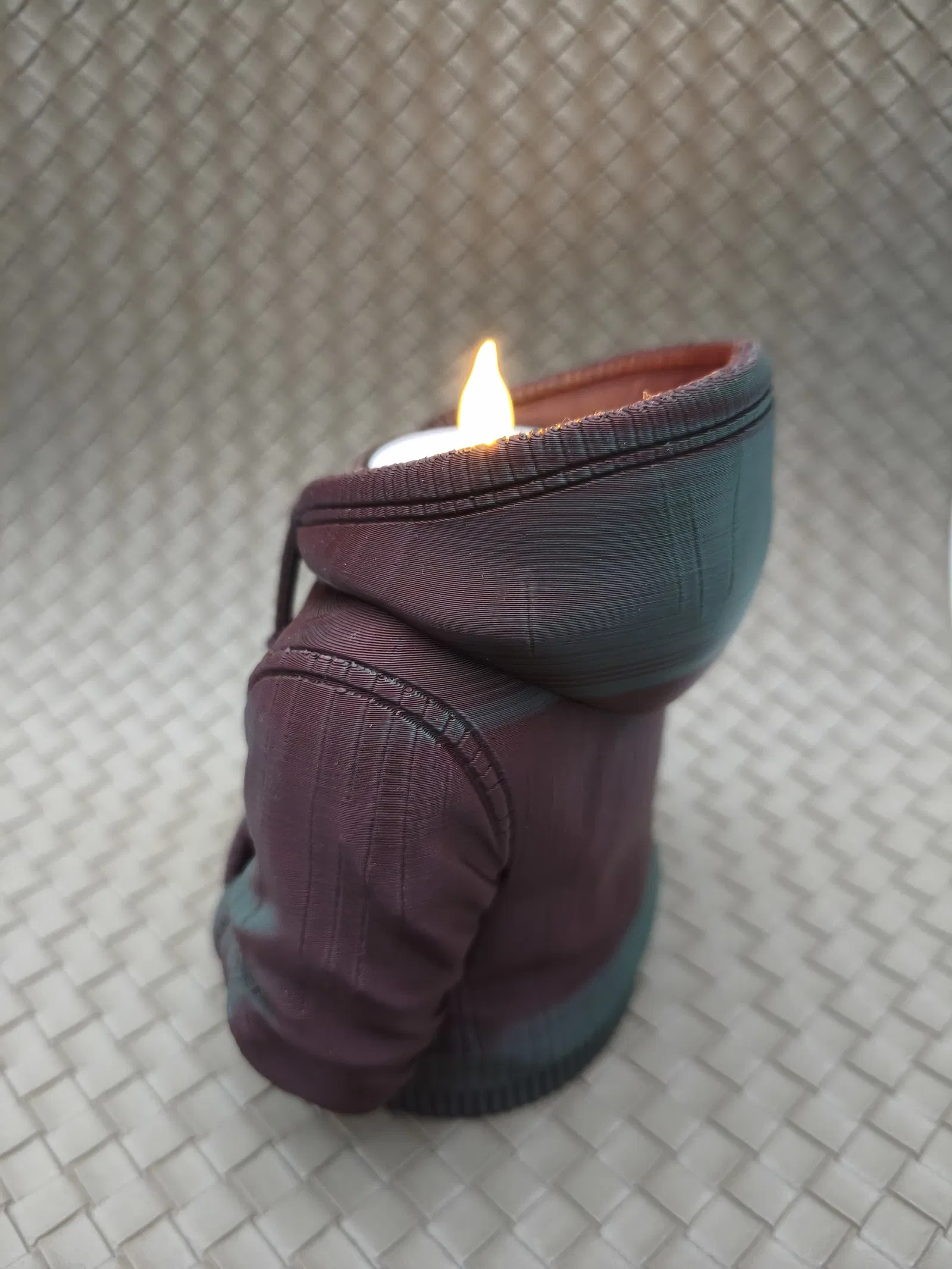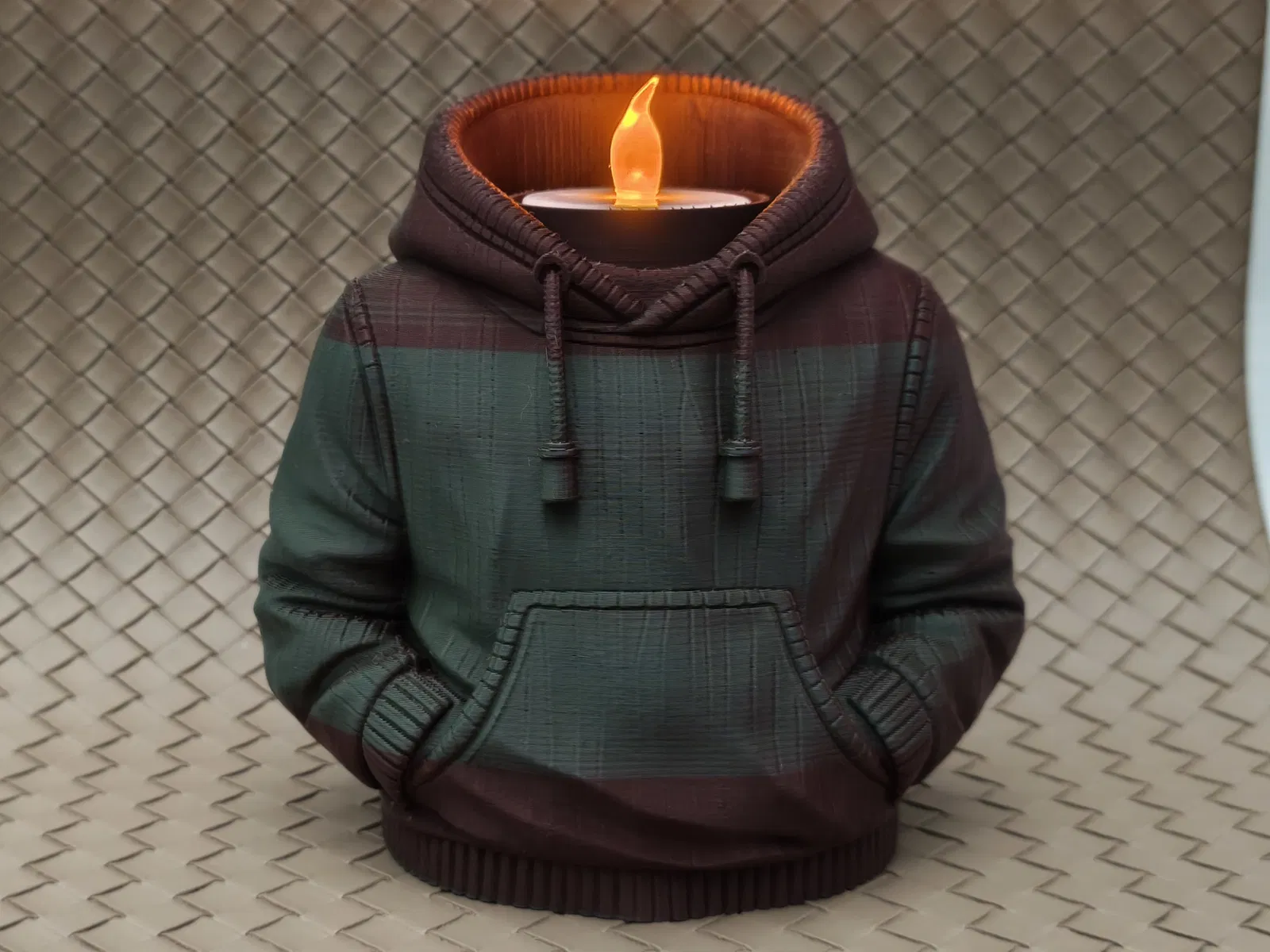 Mẫu đế đựng đèn LED tealight hình chiếc áo Hoodie độc đáo (phiên bản không mũ). Phù hợp với đèn có đường kính 37-40mm. Dễ dàng in bằng nhựa PLA với các thiết lập thông dụng. Một món đồ trang trí tuyệt vời cho không gian của bạn.