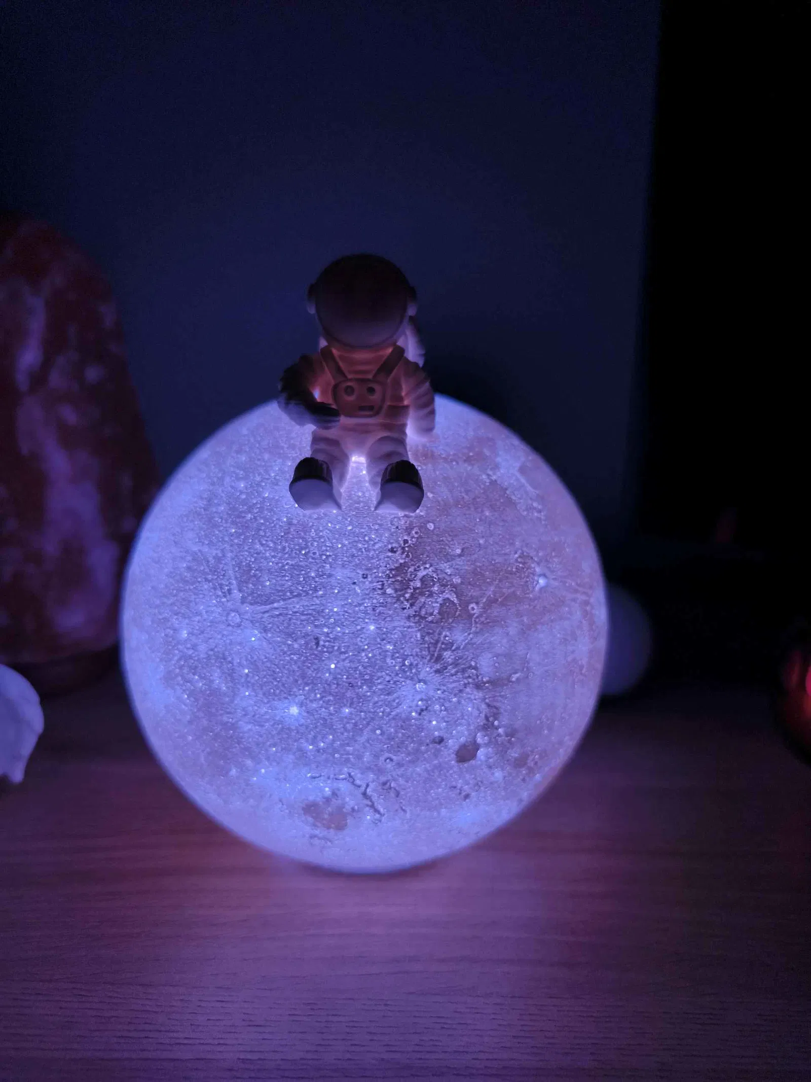 Sản phẩm được thiết kế với độ chi tiết cao, tái hiện bề mặt mặt trăng với những miệng núi lửa đặc trưng, kết hợp cùng hình tượng phi hành gia đang ngồi chill trên bề mặt hành tinh. Ánh sáng từ đèn có thể thay đổi màu sắc linh hoạt thông qua bộ điều khiển từ xa đi kèm, cho phép bạn dễ dàng chuyển đổi từ sắc vàng ấm áp sang xanh dương dịu mắt tùy theo tâm trạng. Đây thực sự là một vật phẩm decor cực kỳ sáng tạo, mang đến hơi thở hiện đại và cá tính cho không gian sống của bạn.