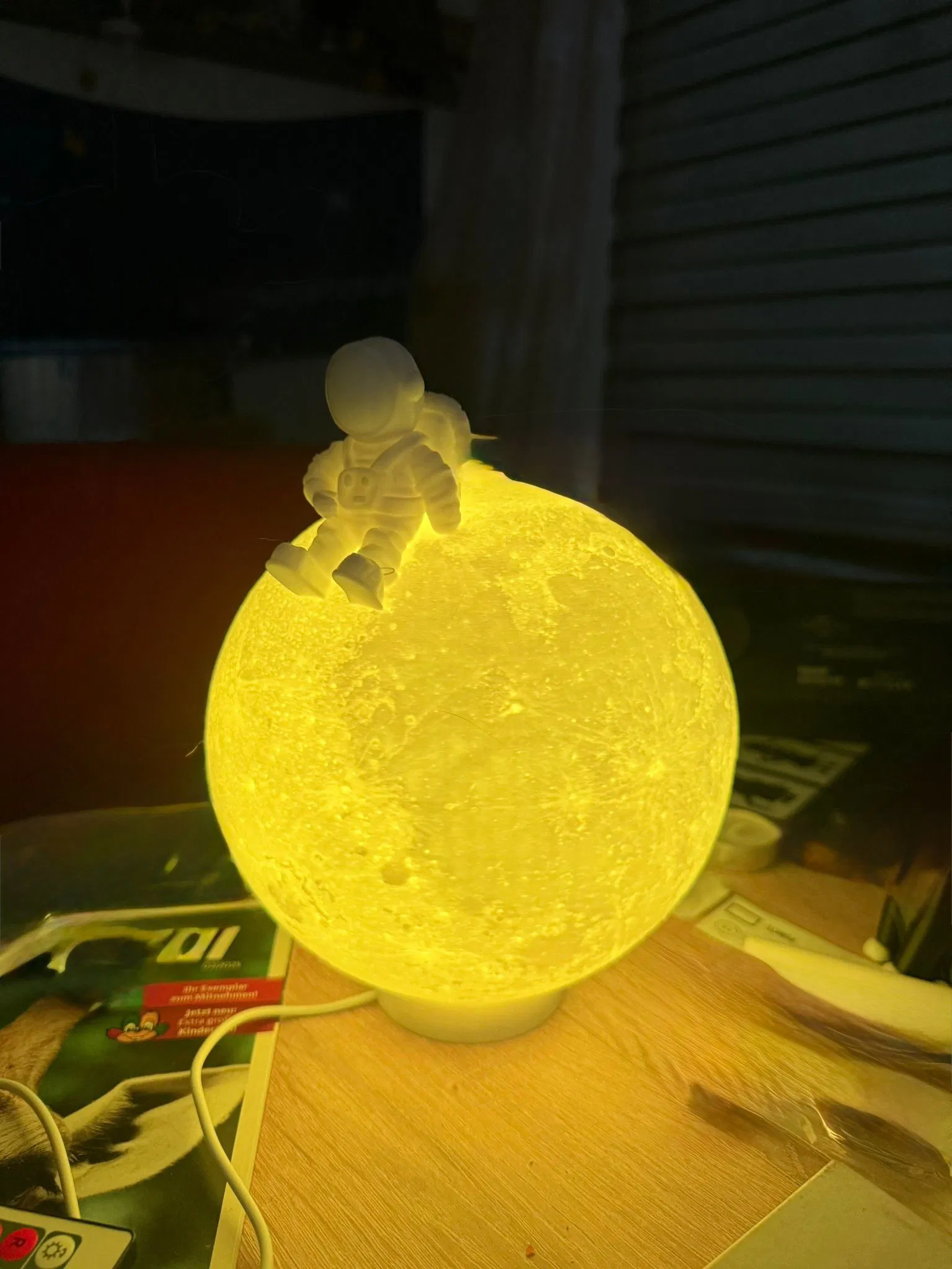 - Thiết kế 2 phần: Khối mặt trăng tích hợp phi hành gia và phần đế đèn thông minh.