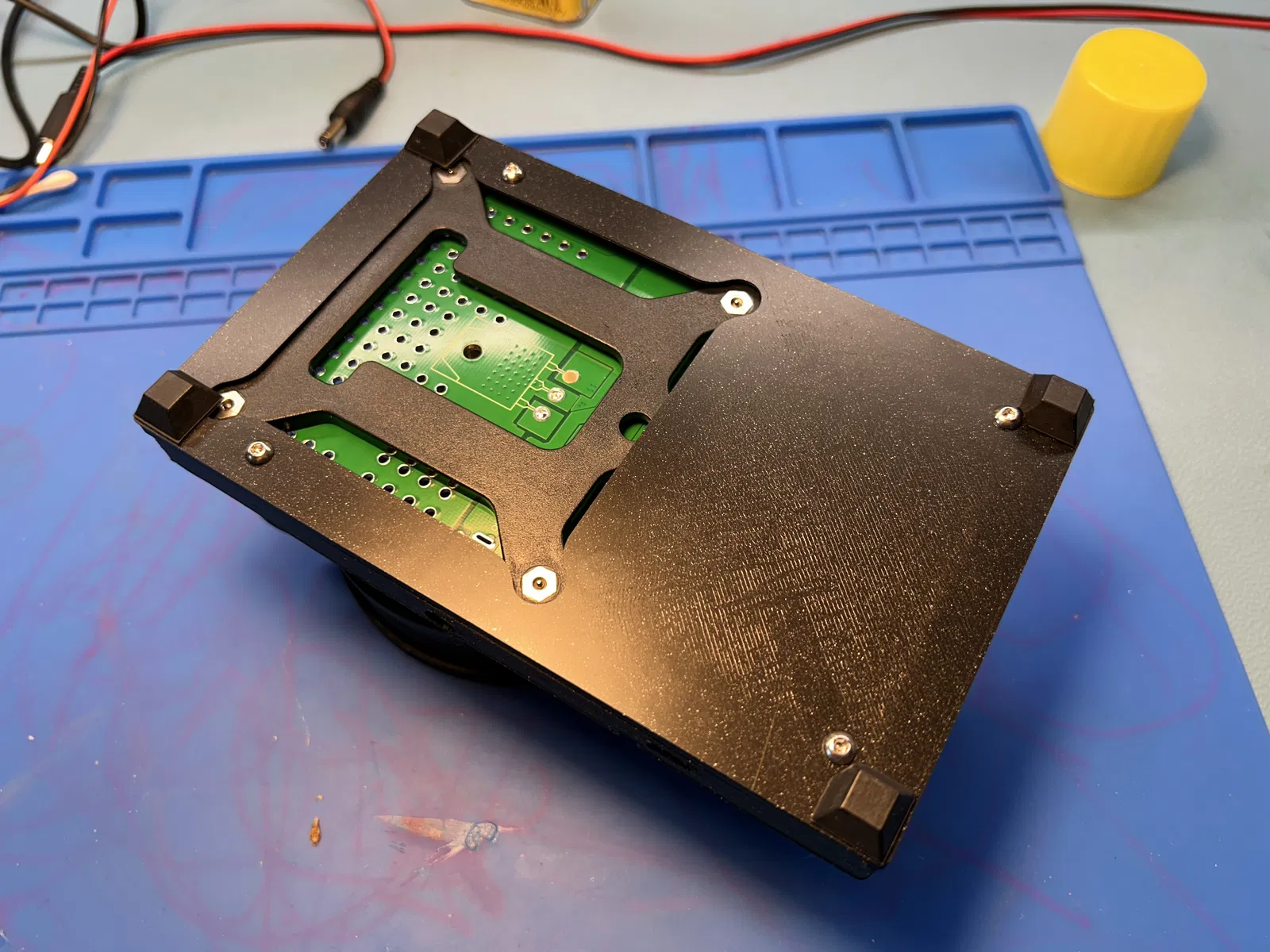 Để đảm bảo độ bền và tính thẩm mỹ cao nhất cho thiết bị sau khi lắp ráp, bộ vỏ được tối ưu hóa để sử dụng ốc vít tự ren M3x14mm, giúp cố định các phần của vỏ một cách chắc chắn vào bo mạch. Ngoài ra, việc thêm các đế cao su ở mặt dưới giúp thiết bị bám chắc trên bàn làm việc, tránh tình trạng trơn trượt khi bạn thao tác điều chỉnh các thông số. Đây là một nâng cấp nhỏ nhưng mang lại trải nghiệm sử dụng chuyên nghiệp hơn hẳn cho những ai yêu thích các thiết bị đo đạc điện tử và 3D printing.