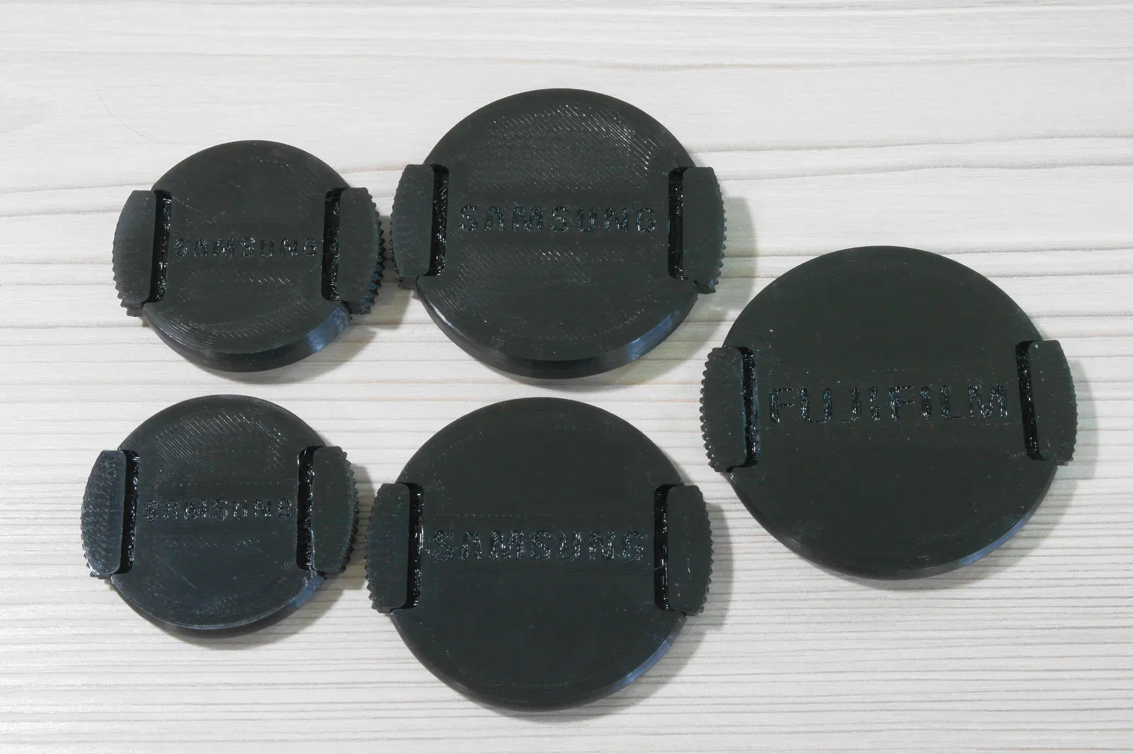 Bộ nắp ống kính với nhiều kích thước (40.5, 52, 58 mm) được in liền khối. Phiên bản này đã cải tiến phần support dưới lò xo để in ổn định hơn với nhựa PETG. Thiết kế tối ưu, in không cần support và dễ dàng tháo rời sau khi in.