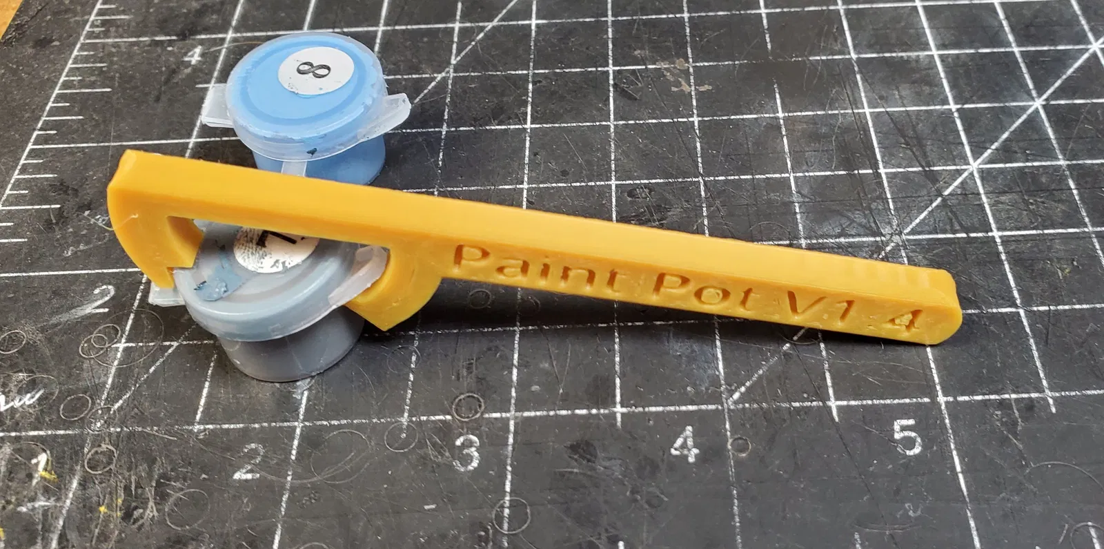 Mình cần một cách dễ dàng để mở mấy hũ sơn nhỏ xíu đi kèm trong bộ tranh tô màu theo số, mà tìm trên mạng không thấy cái nào ưng ý, nên mình tự thiết kế cái dụng cụ mở (cờ lê) này luôn. Dùng cái này mở nắp sơn tiện lắm. Tùy vào loại hũ sơn mà bạn có thể cần cắt bớt một cái ngàm ở phần đế hũ thì mới vừa, nhưng mấy hũ trong bộ của mình thì mở tốt mà không cần cắt gì hết. Dụng cụ này dùng chung với đế giữ hũ sơn của mình ở đây cực hợp:
