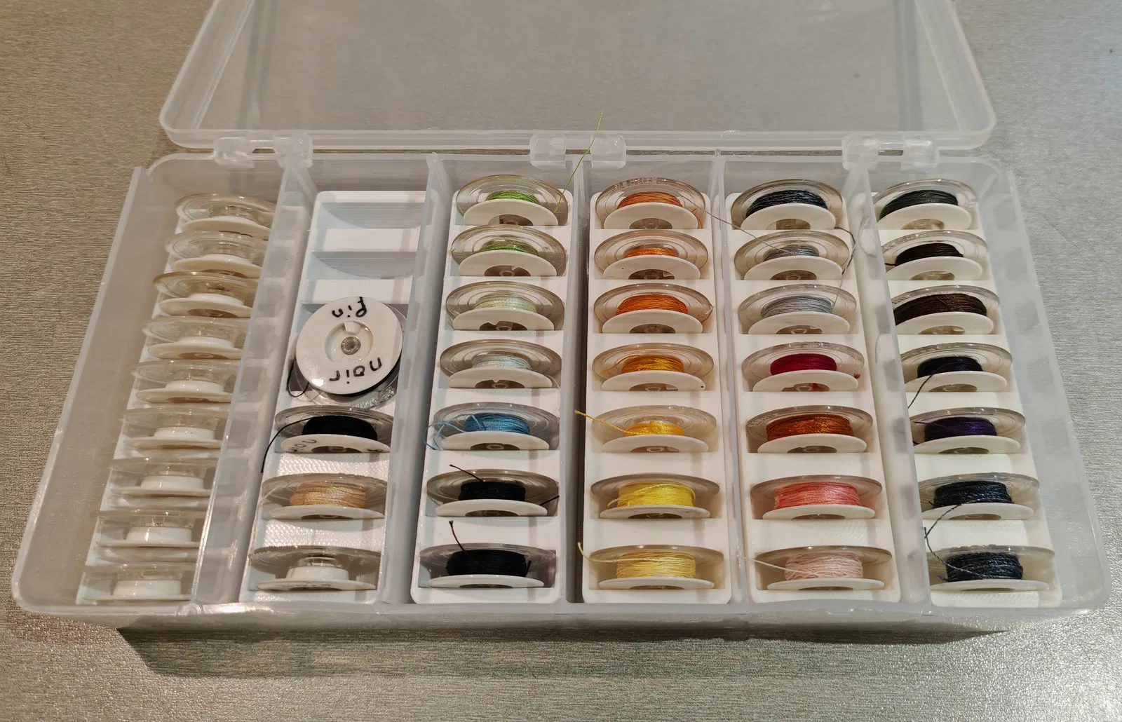 Việc sử dụng khay đựng suốt chỉ này không chỉ giúp không gian làm việc của bạn gọn gàng hơn mà còn bảo vệ suốt chỉ khỏi bụi bẩn hay va đập không đáng có. Bạn có thể dễ dàng đặt khay vào trong các hộp dụng cụ hoặc ngăn kéo máy may để tối ưu hóa không gian. Thiết kế đơn giản nhưng hiệu quả, cho phép bạn nhìn thấy màu sắc của từng sợi chỉ ngay lập tức, từ đó tiết kiệm thời gian đáng kể trong quá trình may vá hằng ngày.