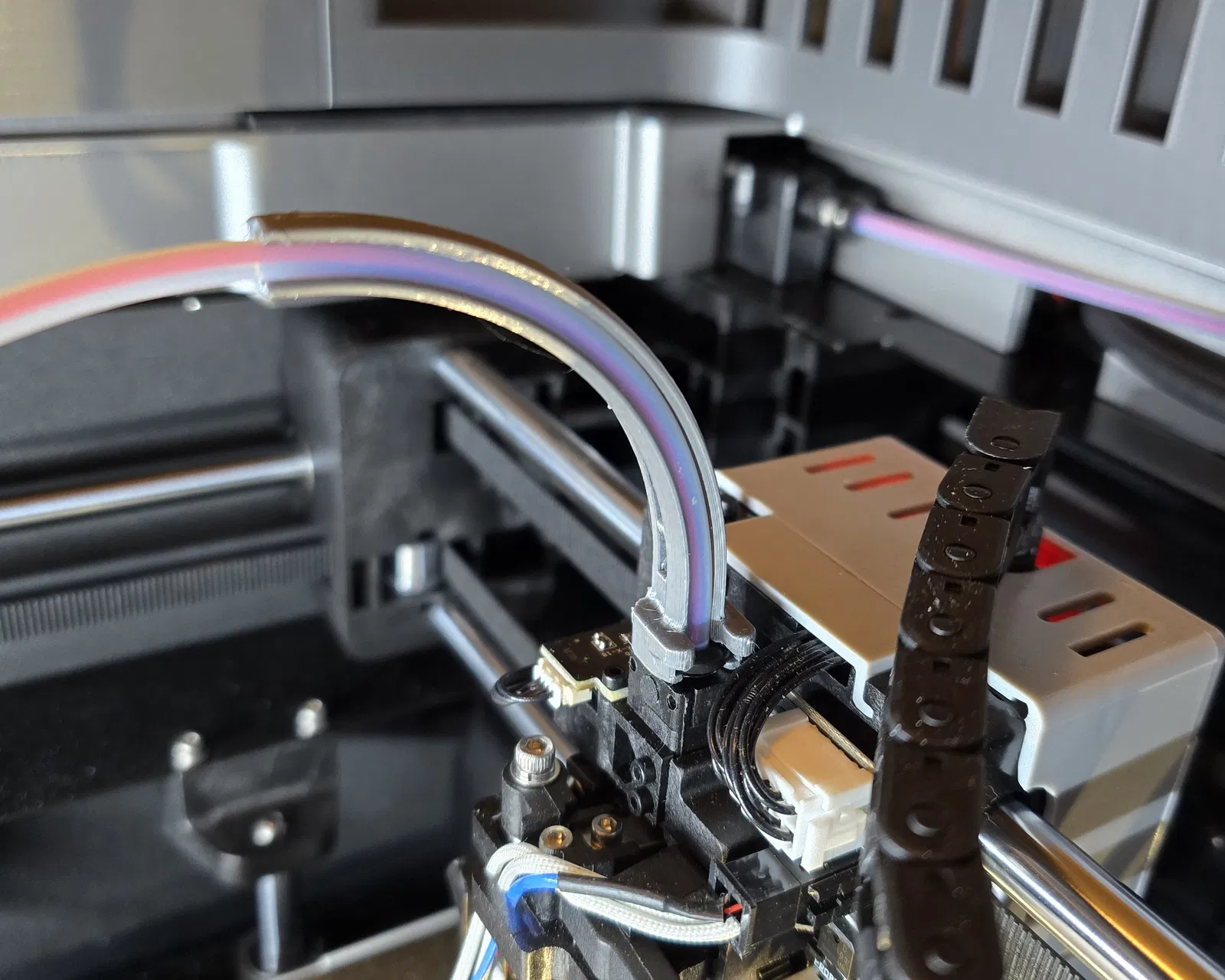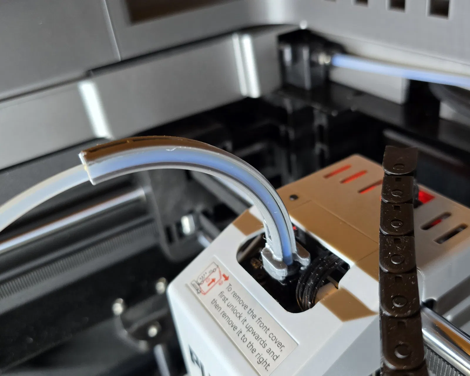 Nâng cấp máy in 3D Qidi 4 Plus của bạn với bộ dẫn ống PTFE cải tiến này, được thiết kế để giữ đường dẫn sợi nhựa ở góc 90 độ. Thiết kế này cũng loại bỏ nhu cầu dùng kẹp giữ ống PTFE vì nó có thể gắn khớp vào ngay. Bộ phận này giúp sợi nhựa đi vào mượt mà hơn bằng cách giảm ma sát và đảm bảo căn chỉnh tốt hơn vào đầu đùn (extruder), mà không gây cản trở hay làm hư hại cảm biến hết nhựa. Lưu ý!!! Máy in của bạn bắt buộc phải lắp sẵn kính đậy (glass riser) thì mẫu này mới hoạt động đúng cách. Được phát triển bằng cách kết hợp và tinh chỉnh từ nhiều thiết kế hiện có, mẫu này giải quyết các vấn đề thường gặp ở những giải pháp tương tự. Đơn giản, tin cậy và hiệu quả—một nâng cấp dễ dàng để việc thay nhựa trên QiDiBox ổn định hơn.