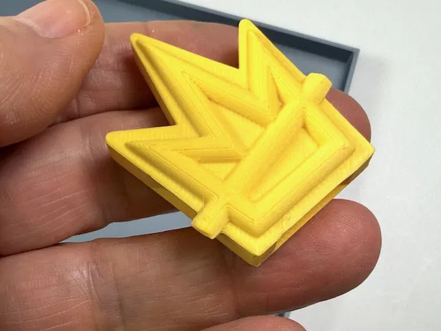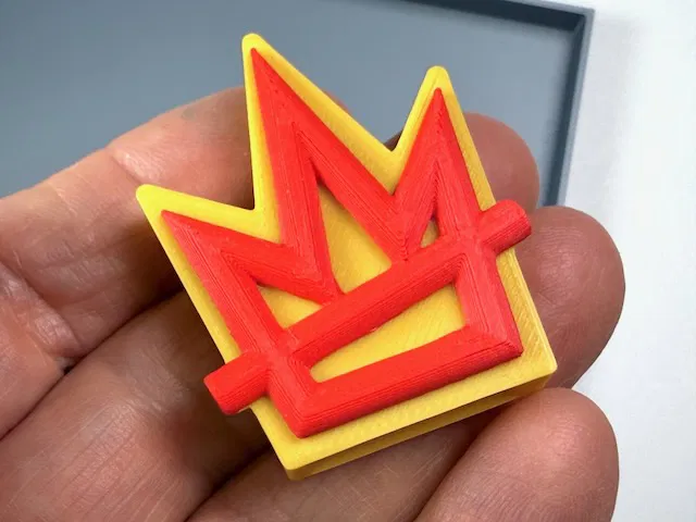 Còi có hai tùy chọn: một màu hoặc hai màu. Khuyên dùng loại hai màu. Nếu máy in của bạn không hỗ trợ đa màu, hãy dùng slicer để thiết lập tạm dừng (pause) thay chỉ ngay sau khi in xong lớp trên cùng của đế còi.