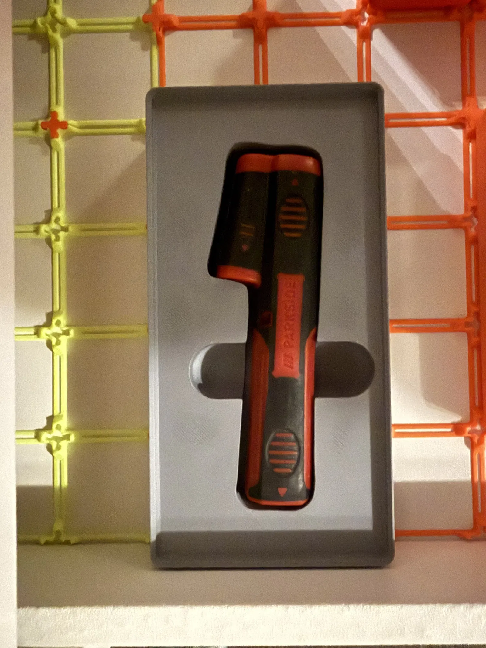 Một chiếc đế giữ Gridfinity được thiết kế riêng cho kìm tuốt dây điện Parkside, giúp dụng cụ của bạn luôn nằm cố định, dễ thấy và cực kỳ thuận tiện khi cần lấy ra sử dụng.