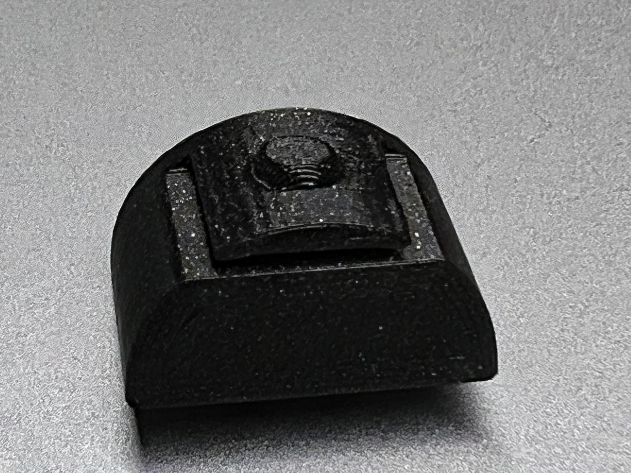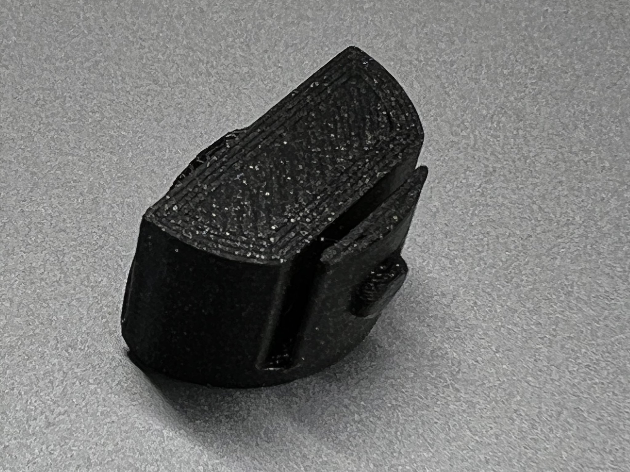 Tôi có băng dính grip trên súng của mình, vì vậy lỗ nhỏ trên tay cầm đã bị che lại. Mảnh nút này có một lỗ được thiết kế trong bản in để đặt công cụ nhằm đẩy mảnh in ra.