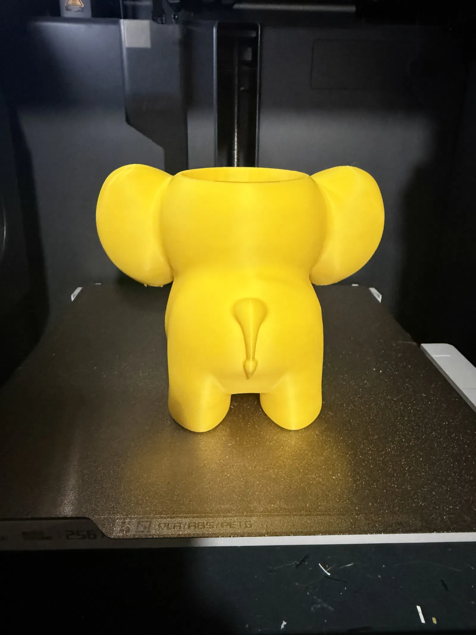- Hỗ trợ (Support): Mẫu này có hình dáng khá bo tròn, bạn có thể cần thêm một chút support nhẹ ở phần vòi hoặc tai tùy thuộc vào khả năng in cầu (overhang) của máy in 3D của bạn, nhưng về cơ bản đây là một mẫu in khá dễ.
