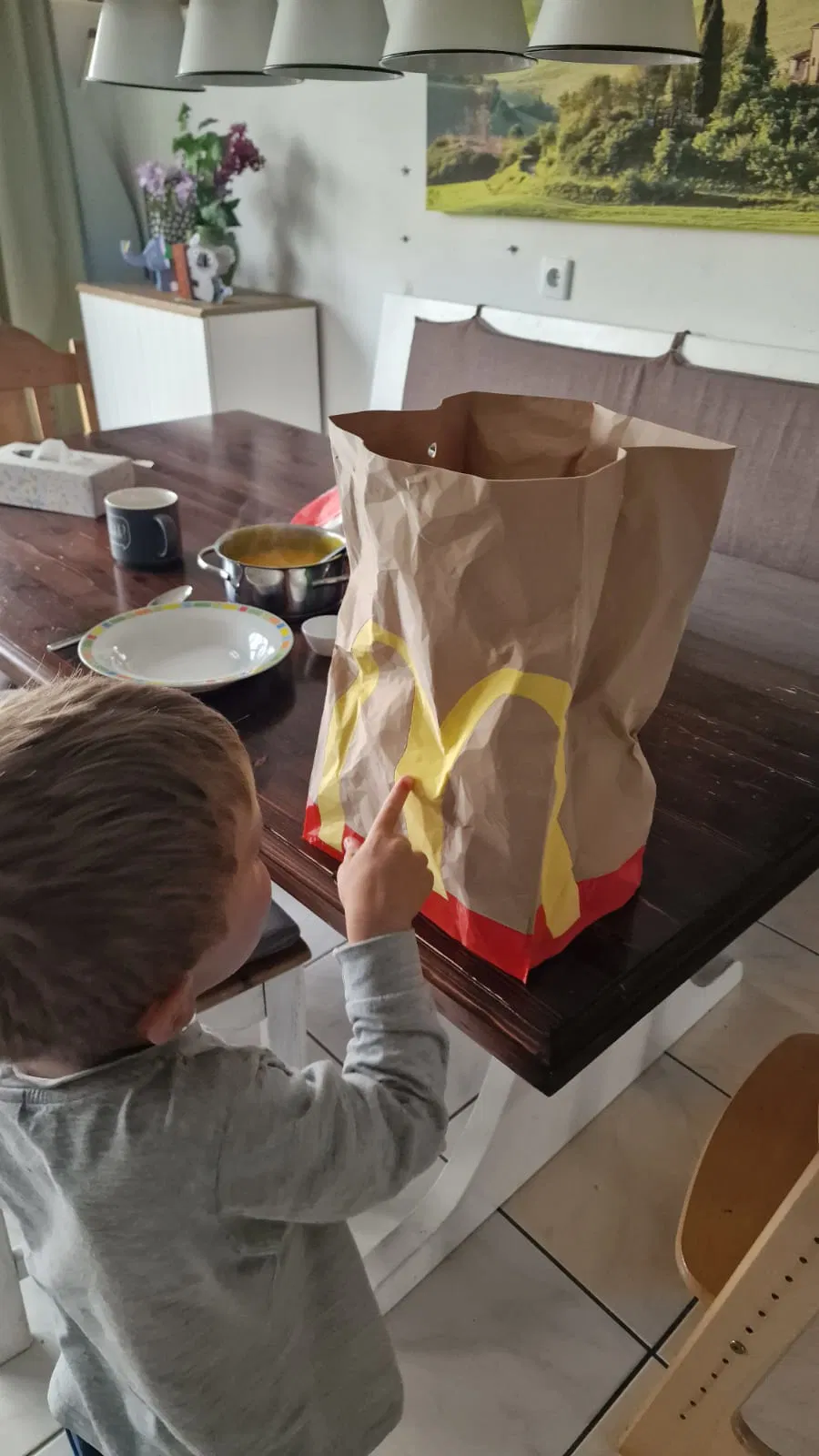 Được tô màu, chia nhỏ và tinh chỉnh để trông giống như chiếc túi giấy của McDonald's: