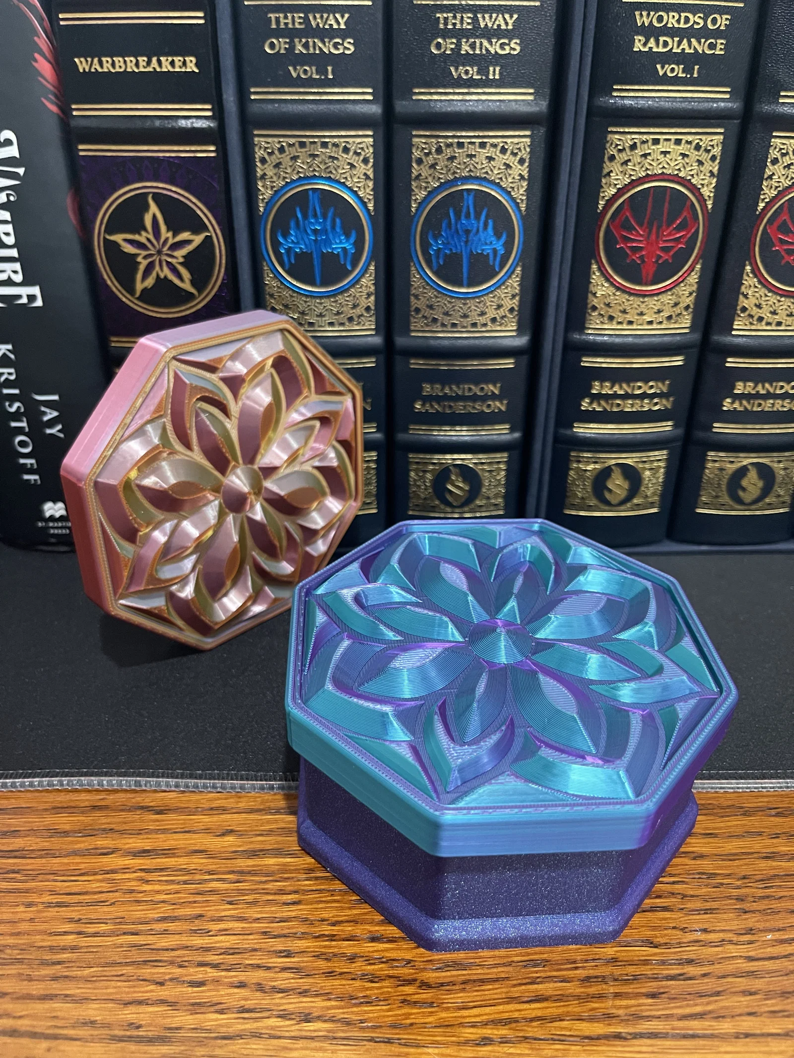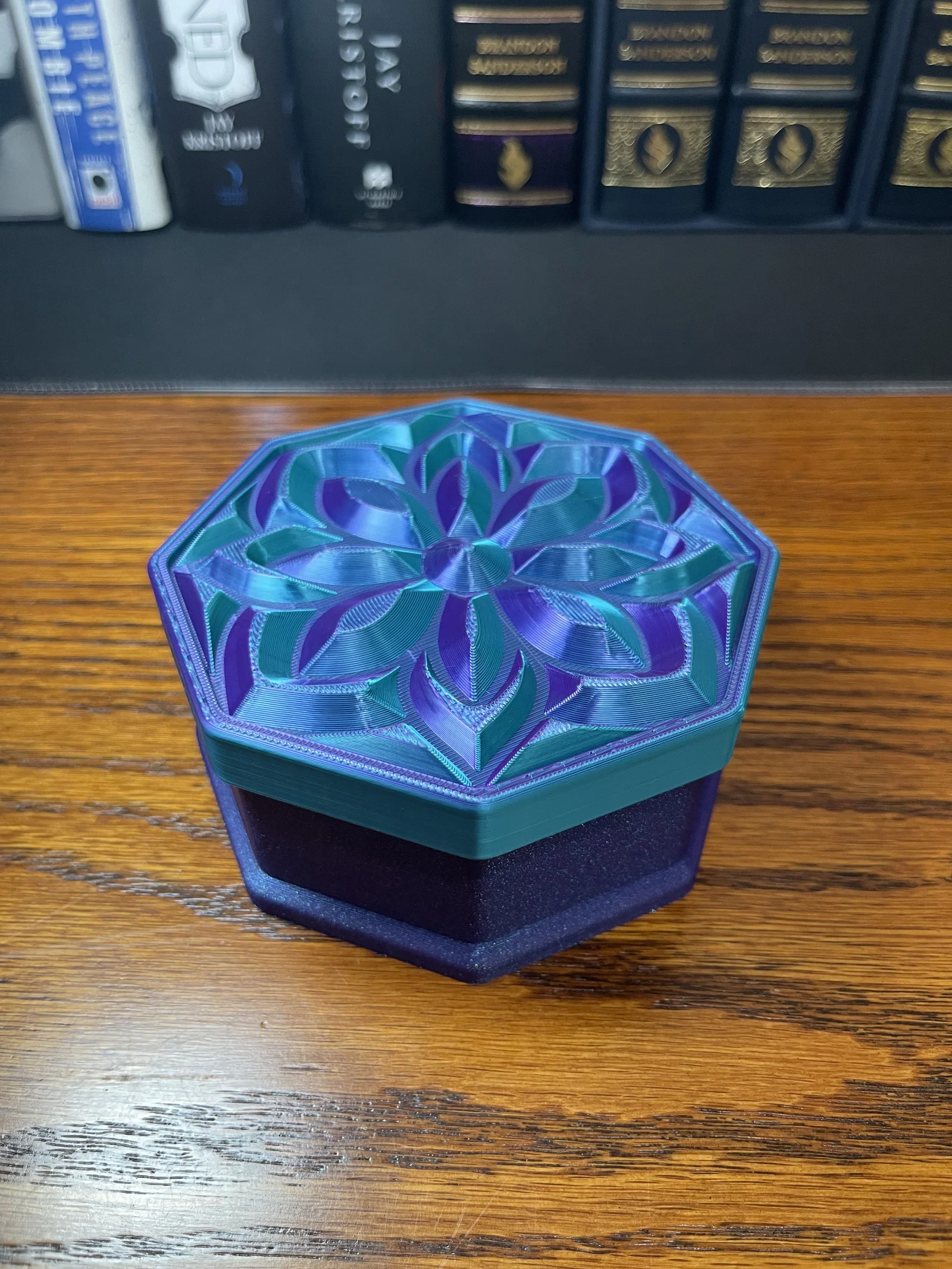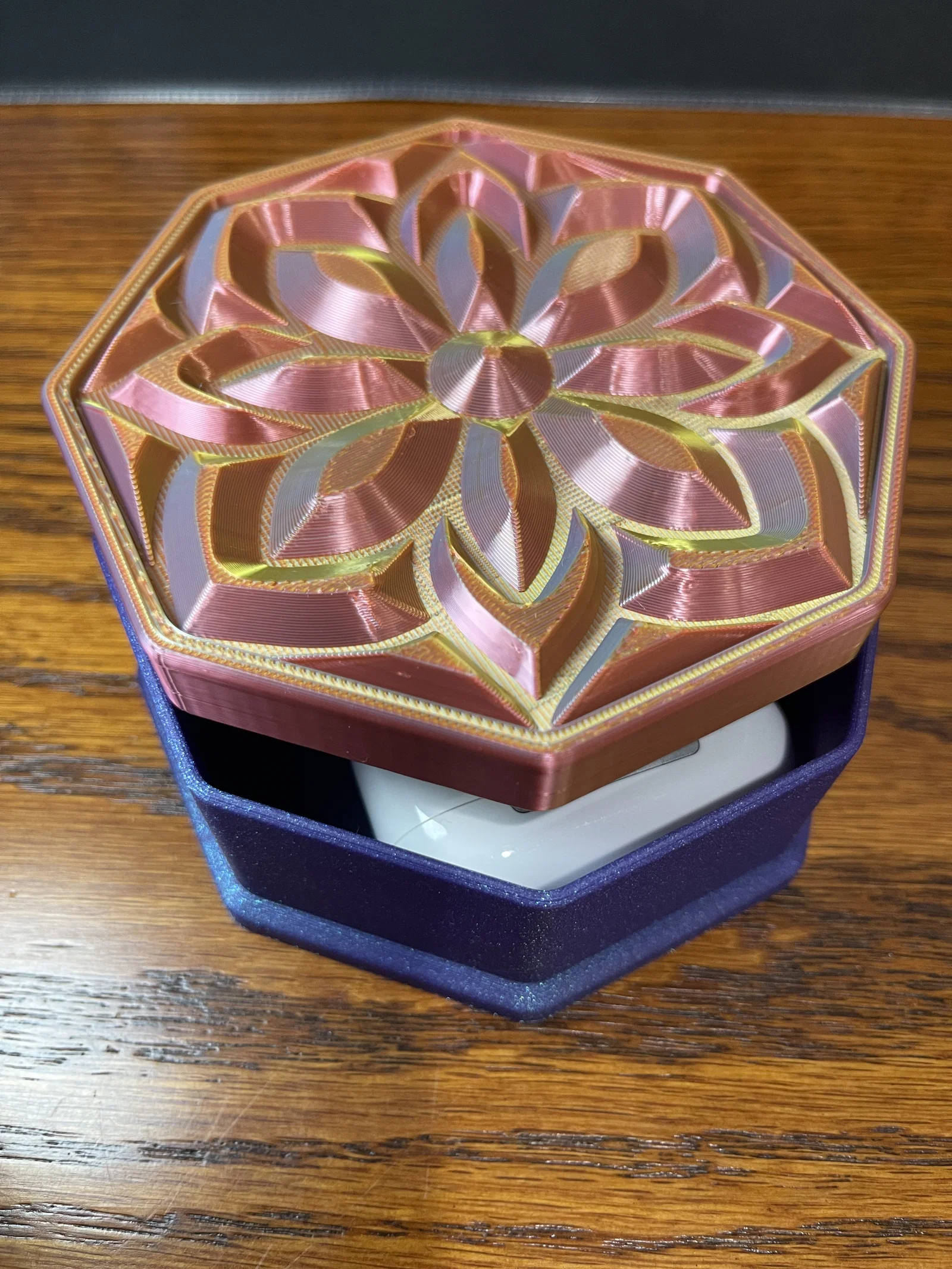 ✔ Nắp Mandala Sang Trọng – Họa tiết hoa lấy cảm hứng từ đá quý bắt sáng cực kỳ đẹp mắt ✔ Hình Dáng Bát Giác – Một biến tấu độc đáo so với các mẫu hộp đựng truyền thống ✔ Thiết Kế Không Cần Support – Dễ dàng in ấn mà không cần dùng đến cấu trúc hỗ trợ ✔ Vừa Tiện Dụng Vừa Decor – Hoàn hảo để đặt trên bàn làm việc, bàn trang điểm, kệ sách hoặc làm quà tặng ✔ Cực hợp với Silk PLA nhiều màu! – Đặc biệt lộng lẫy khi in bằng silk PLA, đặc biệt là các loại nhựa đổi màu kép hoặc ba màu, giúp tạo ra hiệu ứng chuyển màu rực rỡ và chiều sâu sống động cho thiết kế như đá quý này.