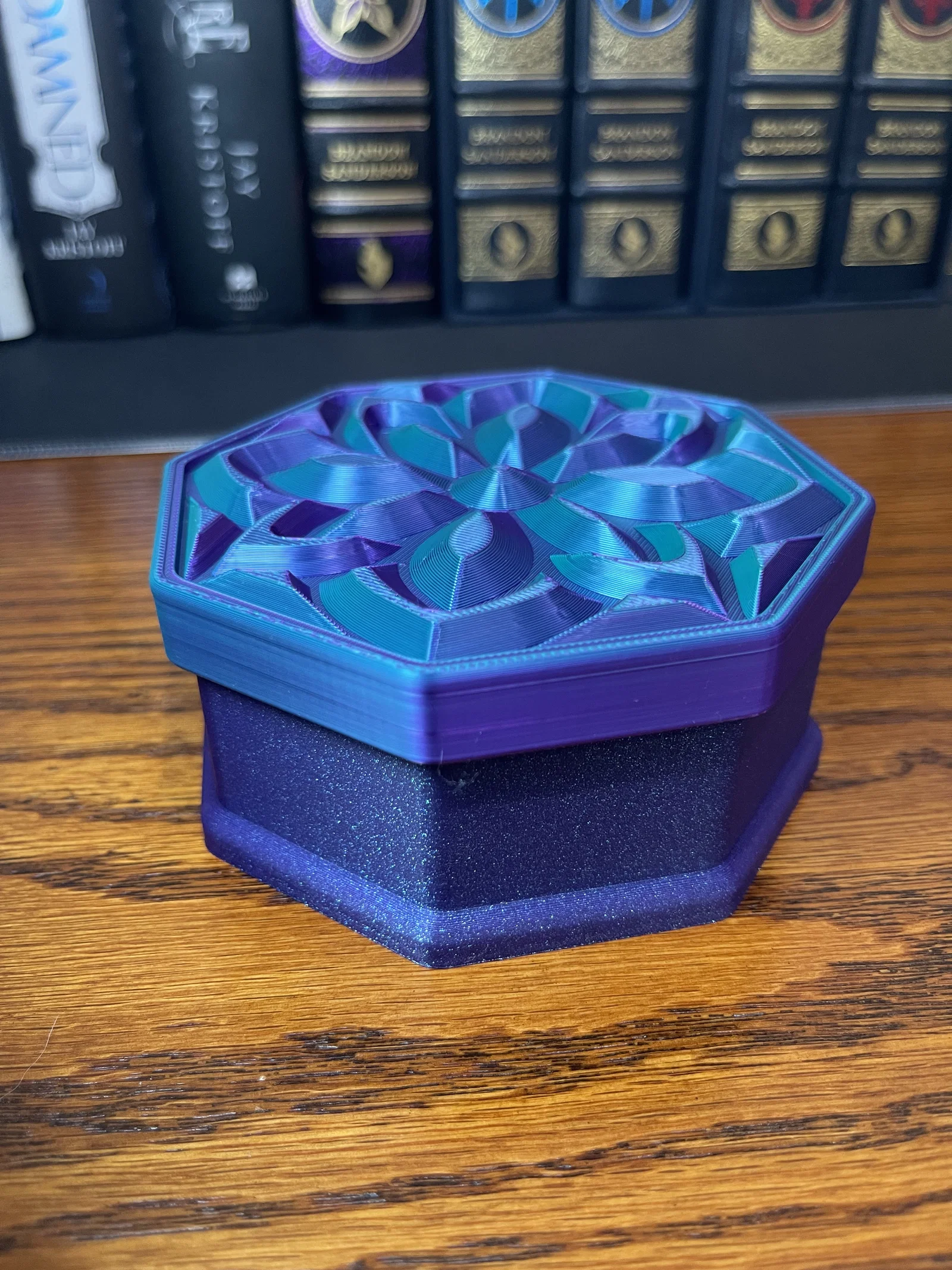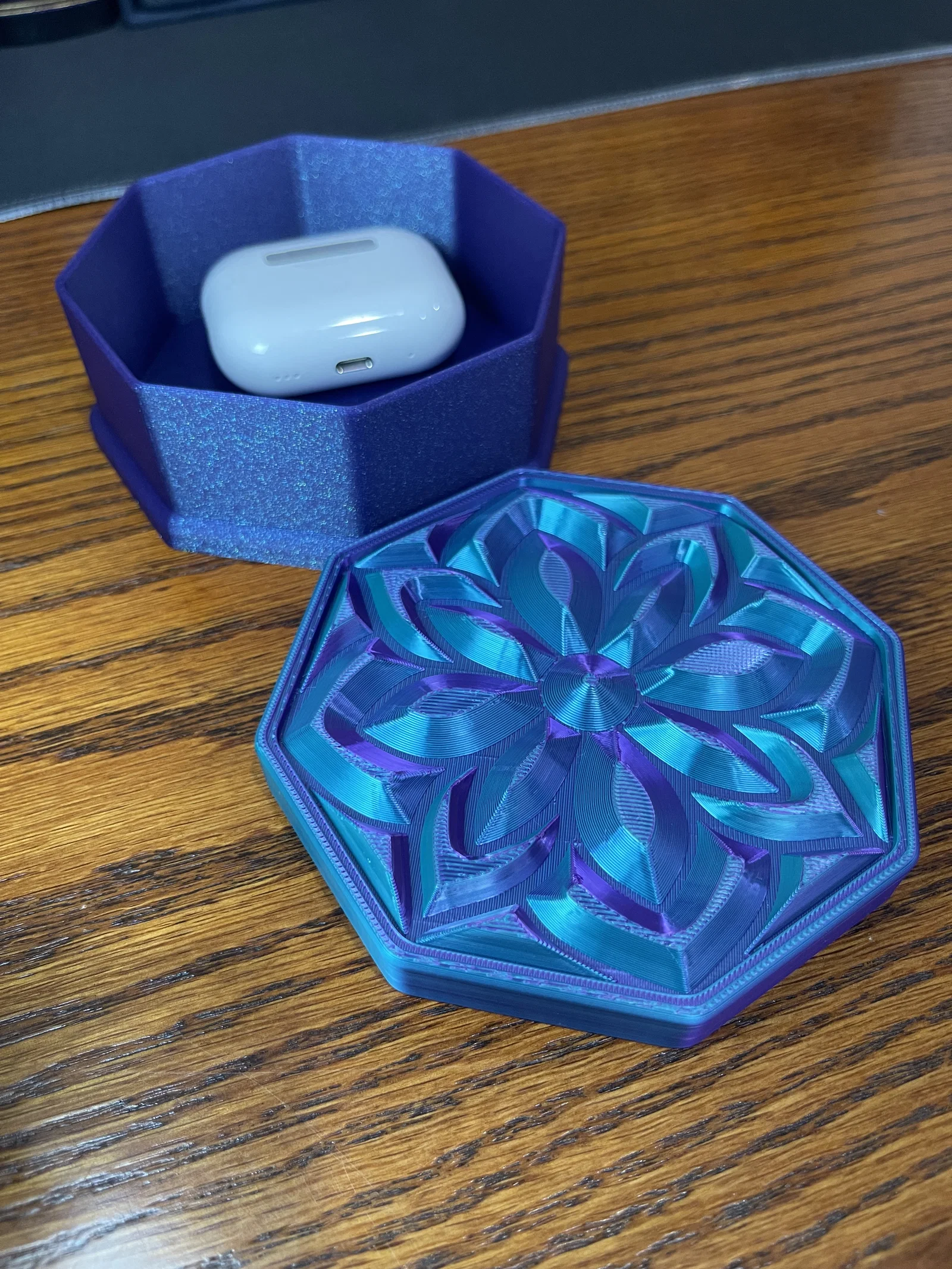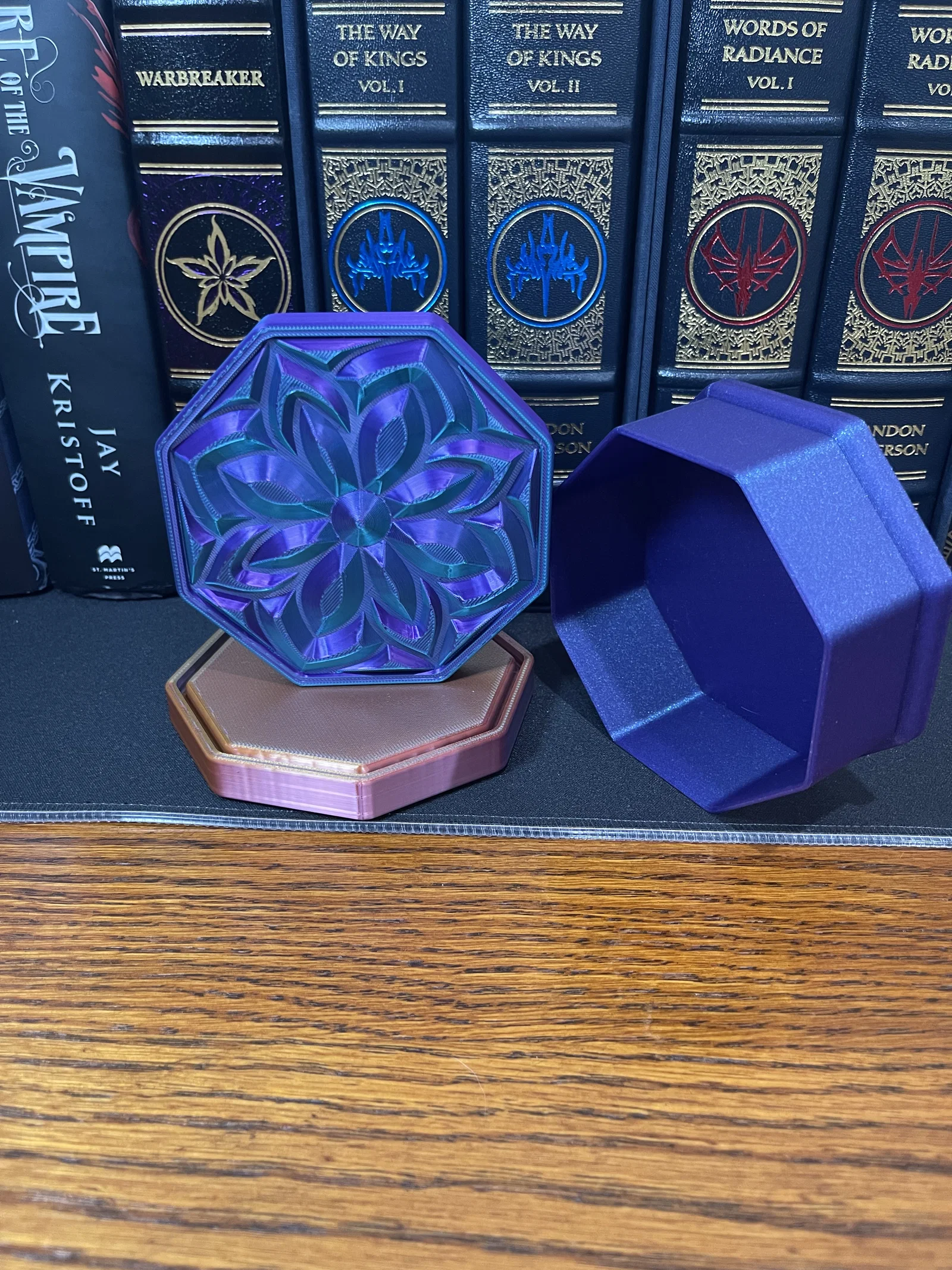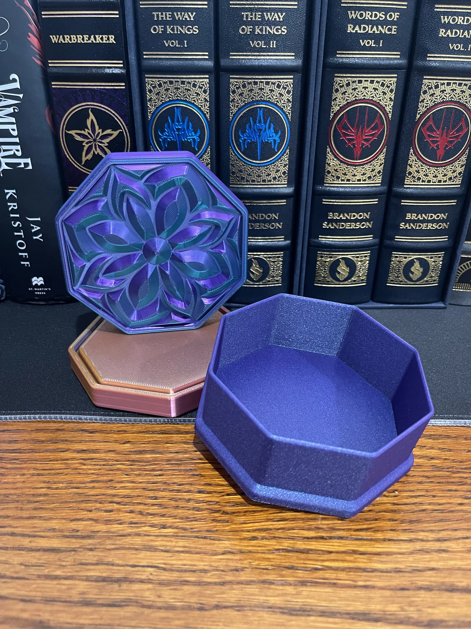 ✔ Nắp Mandala Sang Trọng – Họa tiết hoa lấy cảm hứng từ đá quý bắt sáng cực kỳ đẹp mắt ✔ Hình Dáng Bát Giác – Một biến tấu độc đáo so với các mẫu hộp đựng truyền thống ✔ Thiết Kế Không Cần Support – Dễ dàng in ấn mà không cần dùng đến cấu trúc hỗ trợ ✔ Vừa Tiện Dụng Vừa Decor – Hoàn hảo để đặt trên bàn làm việc, bàn trang điểm, kệ sách hoặc làm quà tặng ✔ Cực hợp với Silk PLA nhiều màu! – Đặc biệt lộng lẫy khi in bằng silk PLA, đặc biệt là các loại nhựa đổi màu kép hoặc ba màu, giúp tạo ra hiệu ứng chuyển màu rực rỡ và chiều sâu sống động cho thiết kế như đá quý này.