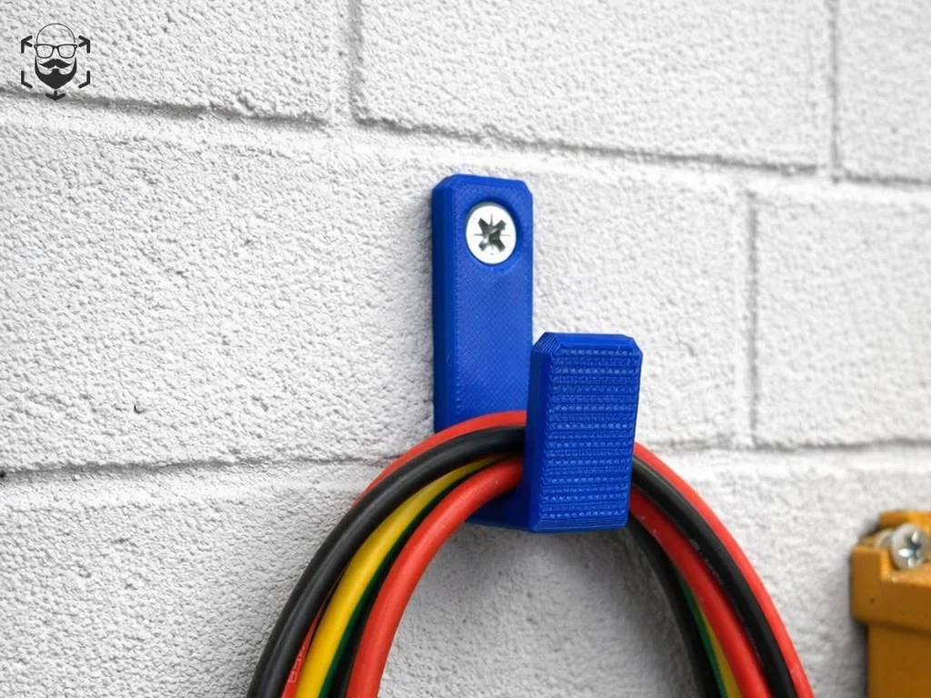 Mẫu móc treo in 3D này giúp bạn sắp xếp dây cáp gọn gàng cho nhà cửa hoặc xưởng làm việc. Thiết kế nhỏ gọn, dễ dàng lắp đặt lên tường, hỗ trợ tốt cho việc quản lý các loại dây điện và cáp mạng.