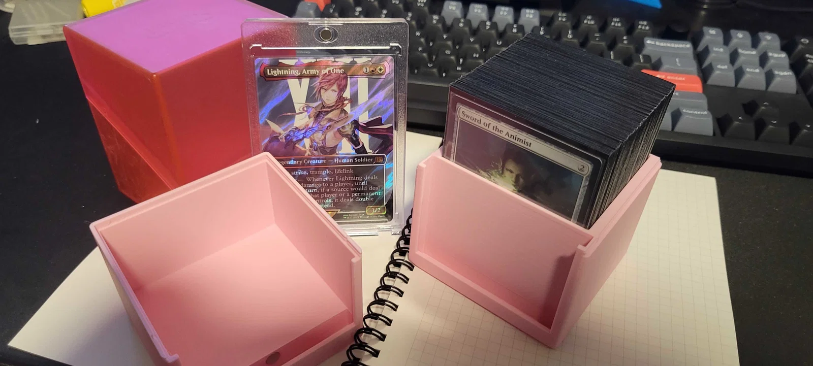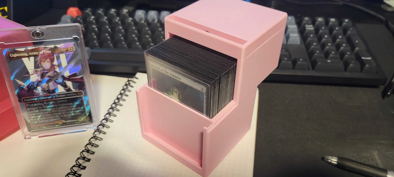 Bạn đang tìm kiếm một chiếc hộp đựng bài (deckbox) độc đáo cho bộ bài MTG hay Commander của mình? Mẫu thiết kế 3D Deckbox for Magnetic Hard Case này là lựa chọn tuyệt vời với tính năng tích hợp khung trưng bày lá bài chủ đạo ngay mặt trước. Sản phẩm được thiết kế tối ưu để chứa vừa vặn bộ bài đã bọc sleeve, bảo vệ an toàn cho những lá bài giá trị của bạn. Với cấu trúc vững chắc và vẻ ngoài hiện đại, chiếc hộp này không chỉ giúp bạn lưu trữ bài gọn gàng khi di chuyển mà còn là phụ kiện trang trí cực chất trên bàn chơi. Hãy in ngay mẫu này để nâng cấp bộ sưu tập thẻ bài của bạn trở nên chuyên nghiệp và bắt mắt hơn bao giờ hết.