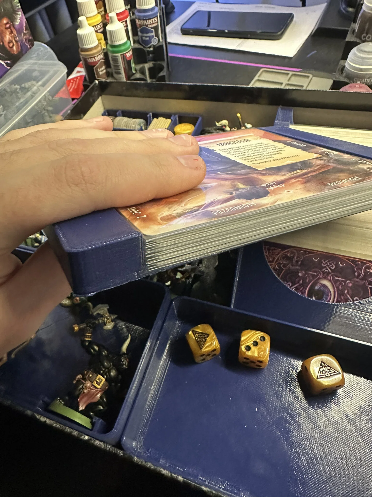 Đây là bản remix khay đựng cho game Talisman 5th edition, bao gồm khay mới cho các mô hình DLC và khay thẻ bài anh hùng được phóng to để chứa được nhiều hơn, kể cả khi đã bọc foil.