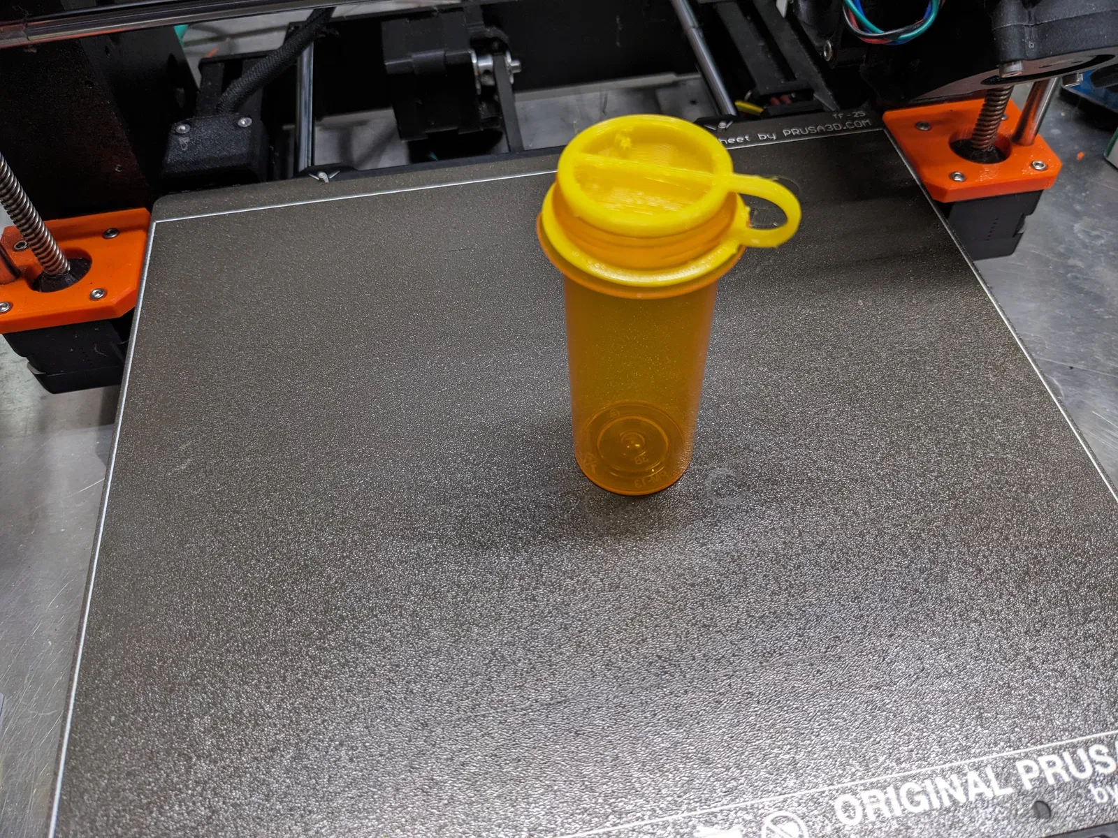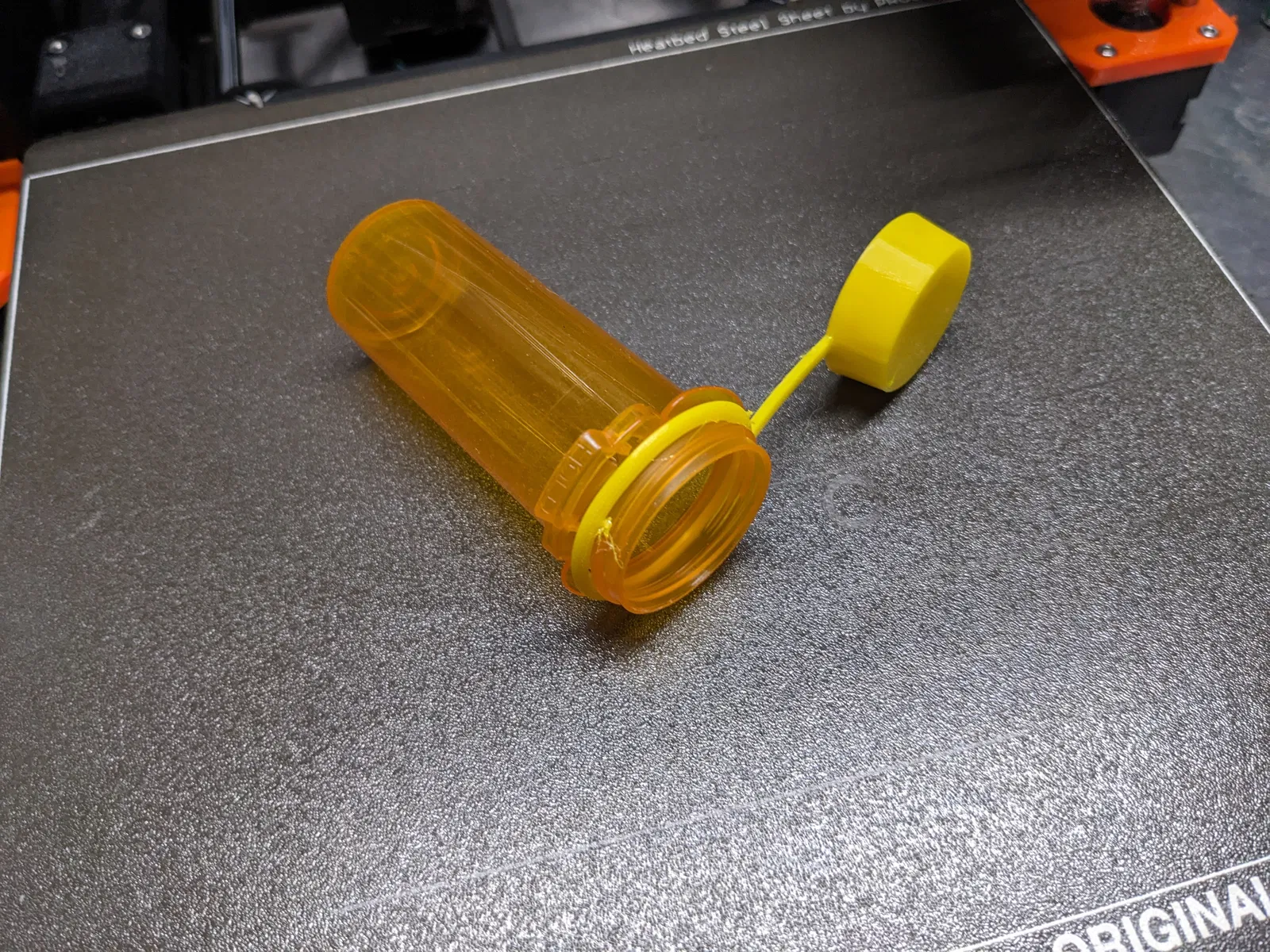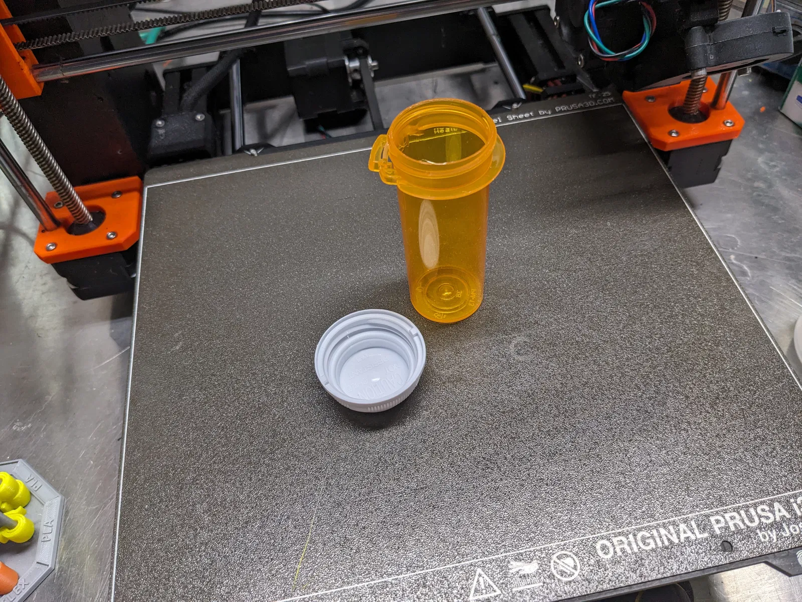 Mình thiết kế nút đậy này cho loại chai thuốc như trong ảnh, có đường kính trong (ID) là 30.5mm. Mình đoán là bạn có thể phóng to/thu nhỏ (scale) để vừa với các kích thước chai khác, nhưng mình chưa thử qua. Mặc dù nắp an toàn gốc có thể lật ngược để vô hiệu hóa tính năng khóa, nhưng nó vẫn dễ bị thất lạc mỗi khi tháo ra.