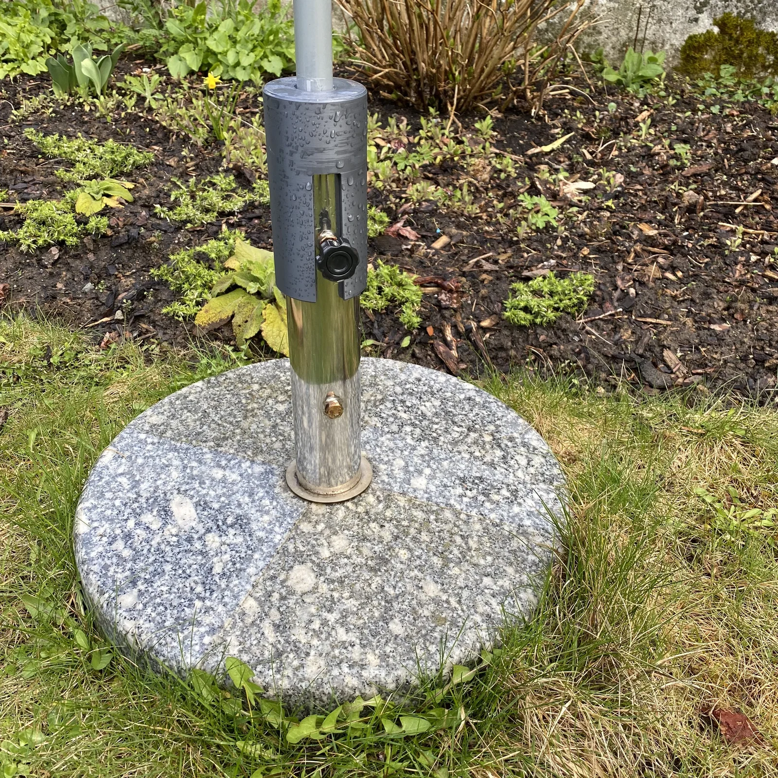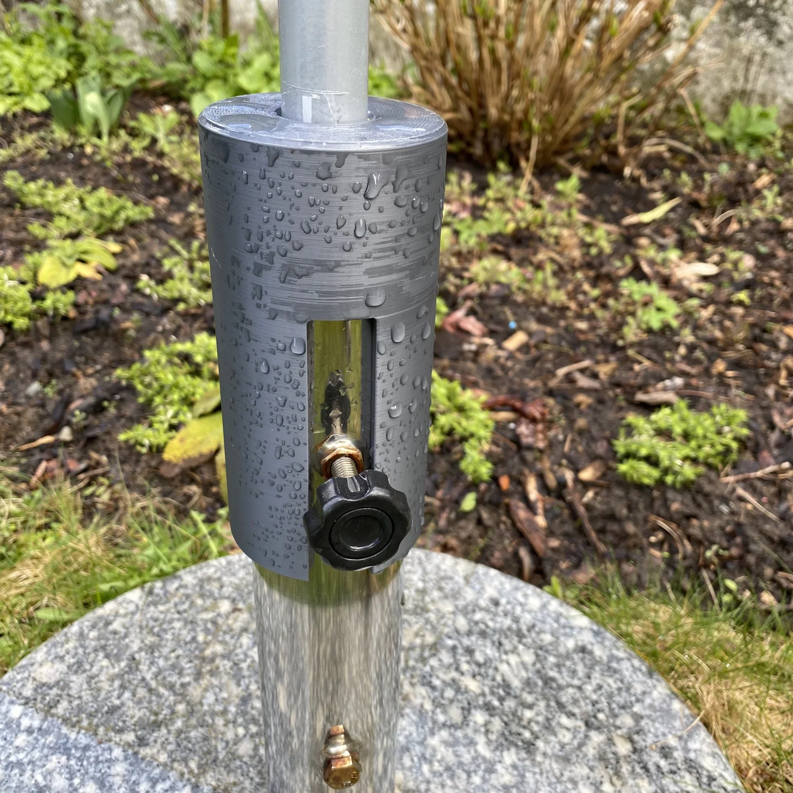 Để có thể sử dụng chân đế dù vốn được thiết kế cho loại dù lớn có đường kính ống 58mm với các loại dù che nắng cỡ nhỏ hơn, mình cần một bộ chuyển đổi xuống còn 25mm cho phần thân dù tiêu chuẩn.