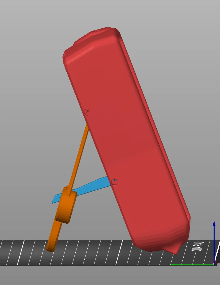 Model 3 có chân chống dùng ổn. Có một thanh nhỏ nối giữa thân vỏ và cụm “stand/magnets/loop” để nó không bị xê dịch. Thêm 2 “chân” ở đáy giúp dựng đứng ổn định hơn. Phần đáy cũng rộng thêm 1mm. Tuy nhiên mình muốn chân chống còn cứng cáp hơn (vẫn dùng TPU). Với lại lúc này chân chống có thanh chặn không cho xoay, nhưng cấu trúc để giữ 2 phần dính với nhau (bằng nam châm) lại không đủ chắc (các phần bị tuột ra). Thế là chỉnh thêm vài thứ thành model 4: