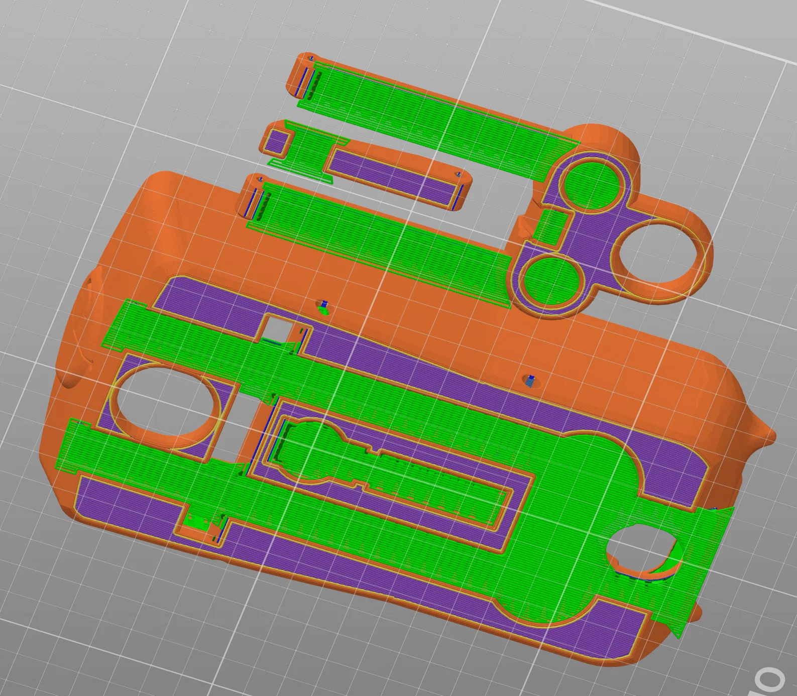 1. Ở model 4, supports trên các mặt phẳng của thân chính gỡ không dễ. Có 2 nguyên nhân có thể: giảm layer height (Model 1-3 là 0.32mm, model 4 là 0.25mm) và giảm độ dày của các mặt phẳng nằm trên supports.