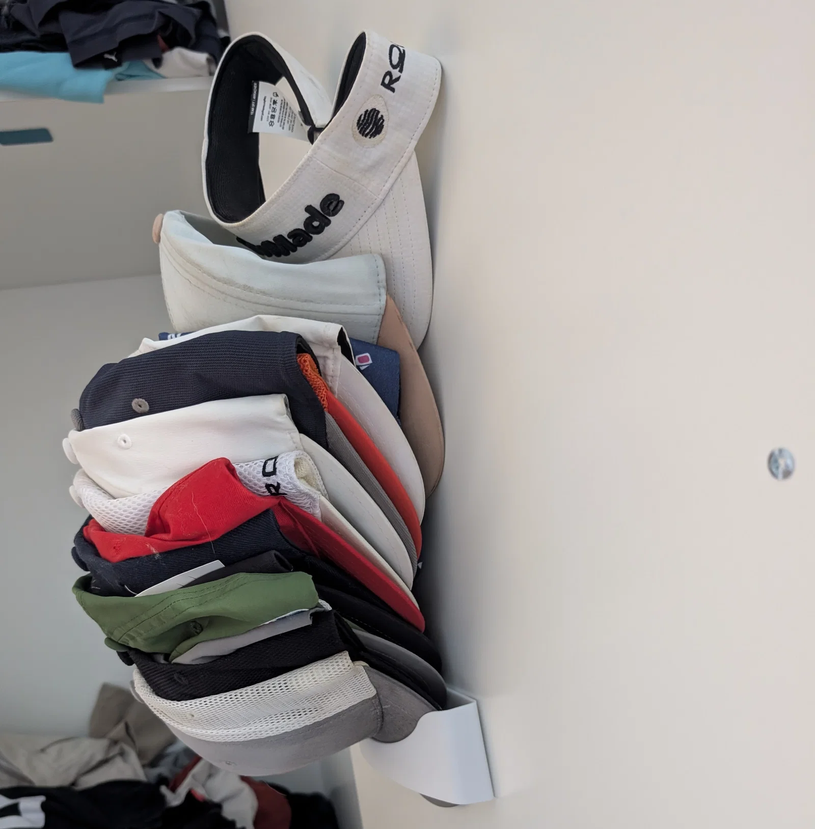 Giải pháp treo nón treo tường giúp tiết kiệm không gian tủ áo. Thiết kế tối giản, chắc chắn, in được bằng chất liệu PETG mà không cần infill. Tuy nhiên, nếu treo quá 8 cái nón thì nhìn sẽ hơi bừa bộn một chút nhé.
