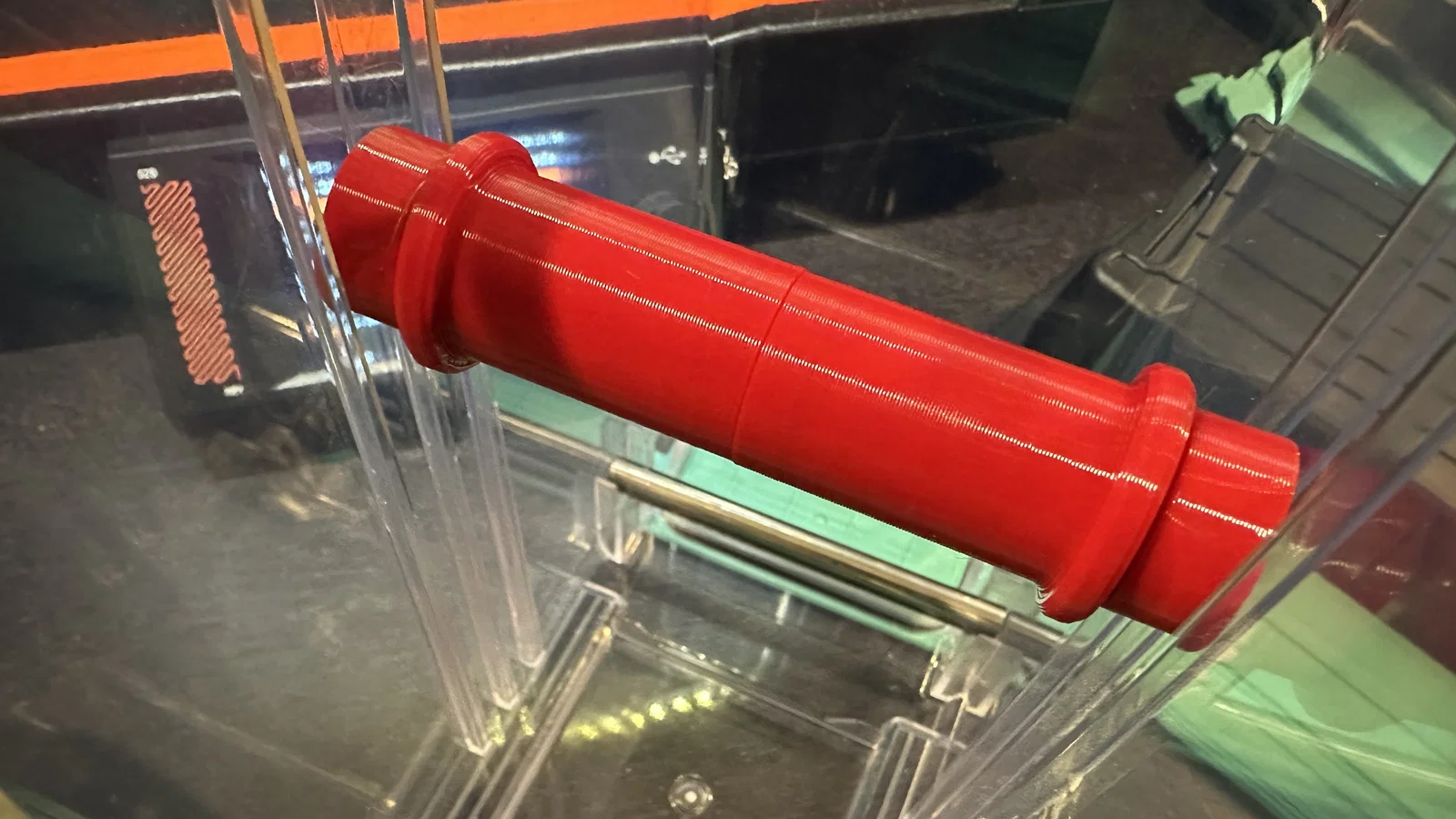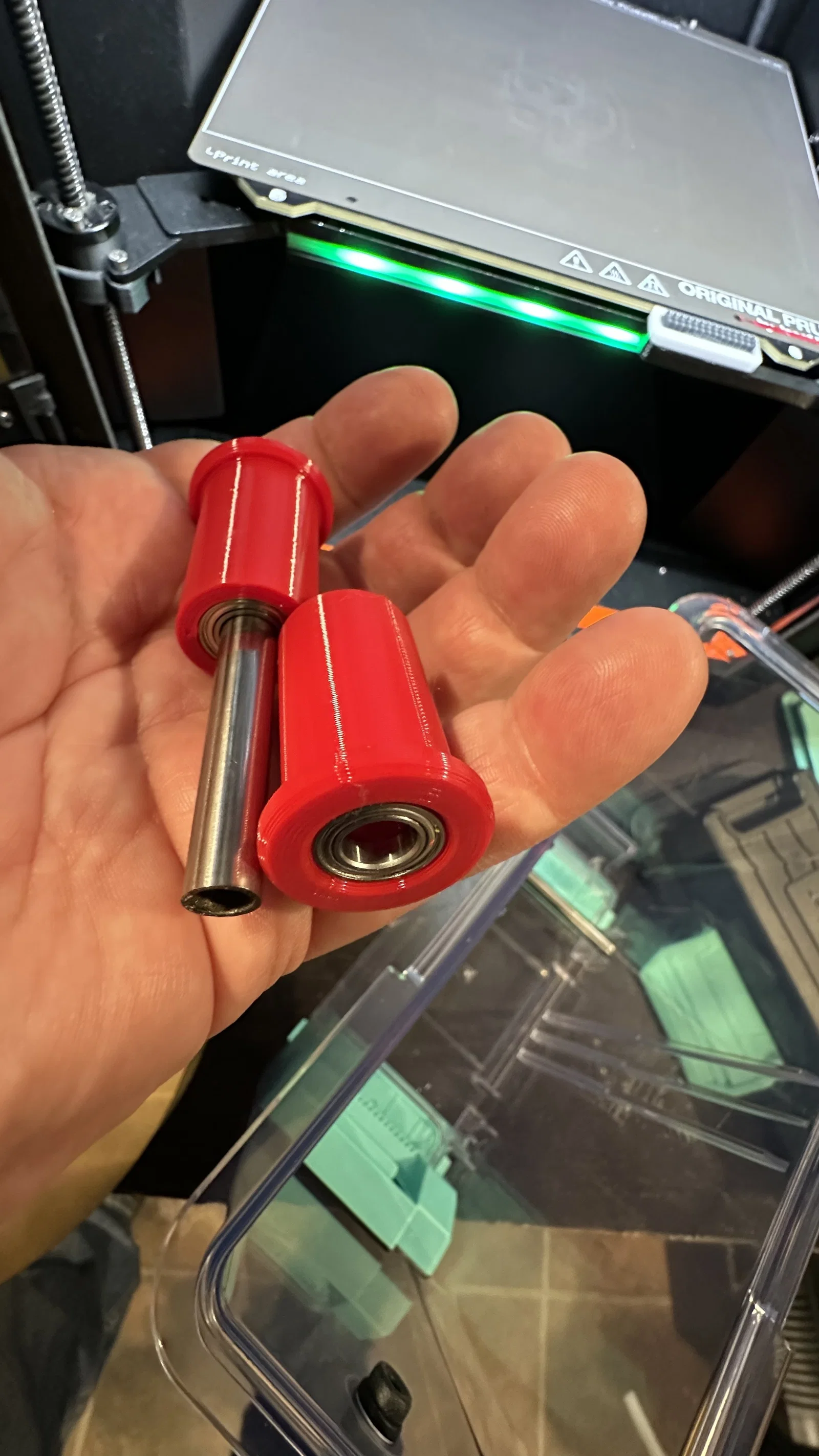 Cuộn nhựa in (filament) lõi giấy thường không xoay trơn tru trên trục nhựa bên trong máy sấy. Các trục kim loại chạy trên vòng bi ở phía dưới còn tệ hơn khi dùng với cuộn lõi giấy. Bạn hãy in 2 cái cho mỗi linh kiện, sau đó tận dụng bốn cái vòng bi và một trục kim loại từ máy sấy để lắp cuộn nhựa lên đó. Sự khác biệt sẽ cực kỳ rõ rệt luôn.