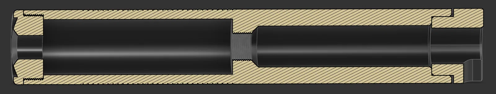 Sản phẩm có hai kiểu gắn. Kiểu thứ nhất là bắt ren trực tiếp (direct thread) kèm vòng đệm định tâm để khớp với bệ ngắm phía trước. Kiểu thứ hai là kiểu ngàm cổ (collar mount). Thân ống giảm thanh được chia làm nhiều phần với nắp cuối dạng ren để việc in 3D dễ dàng hơn.