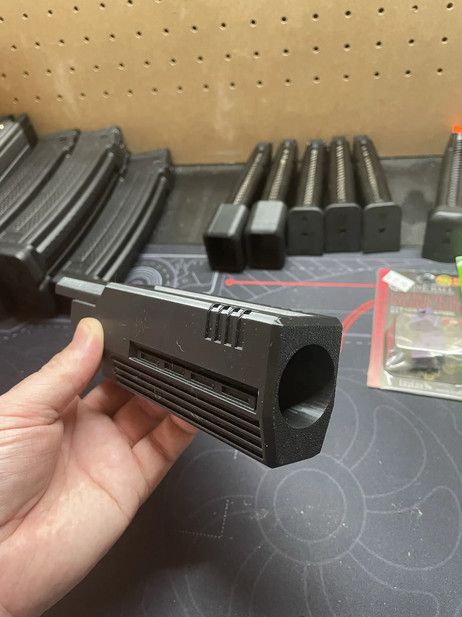 Phần ống giảm thanh/đầu nòng sẽ thay thế cho nòng ngoài (outer barrel) của AAP01. Điểm ngắm phía sau được thay thế bằng thanh ray dẫn hướng và chốt giữ bolt cho slide. Phần ốp tay cầm (handguard) sẽ được lắp khớp vào rãnh ở phía dưới ống giảm thanh và gài vào các khe cắt ở dưới phần tay cầm súng. Phía dưới ống giảm thanh cũng có một khoảng cắt để lắp thanh ray nòng ngoài đi kèm với AAP01.