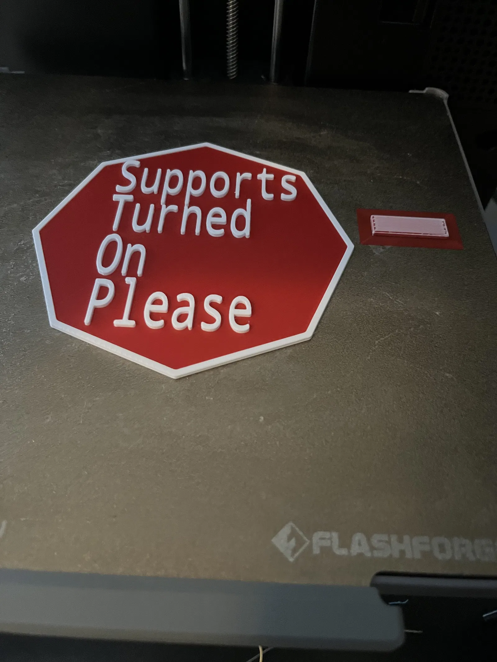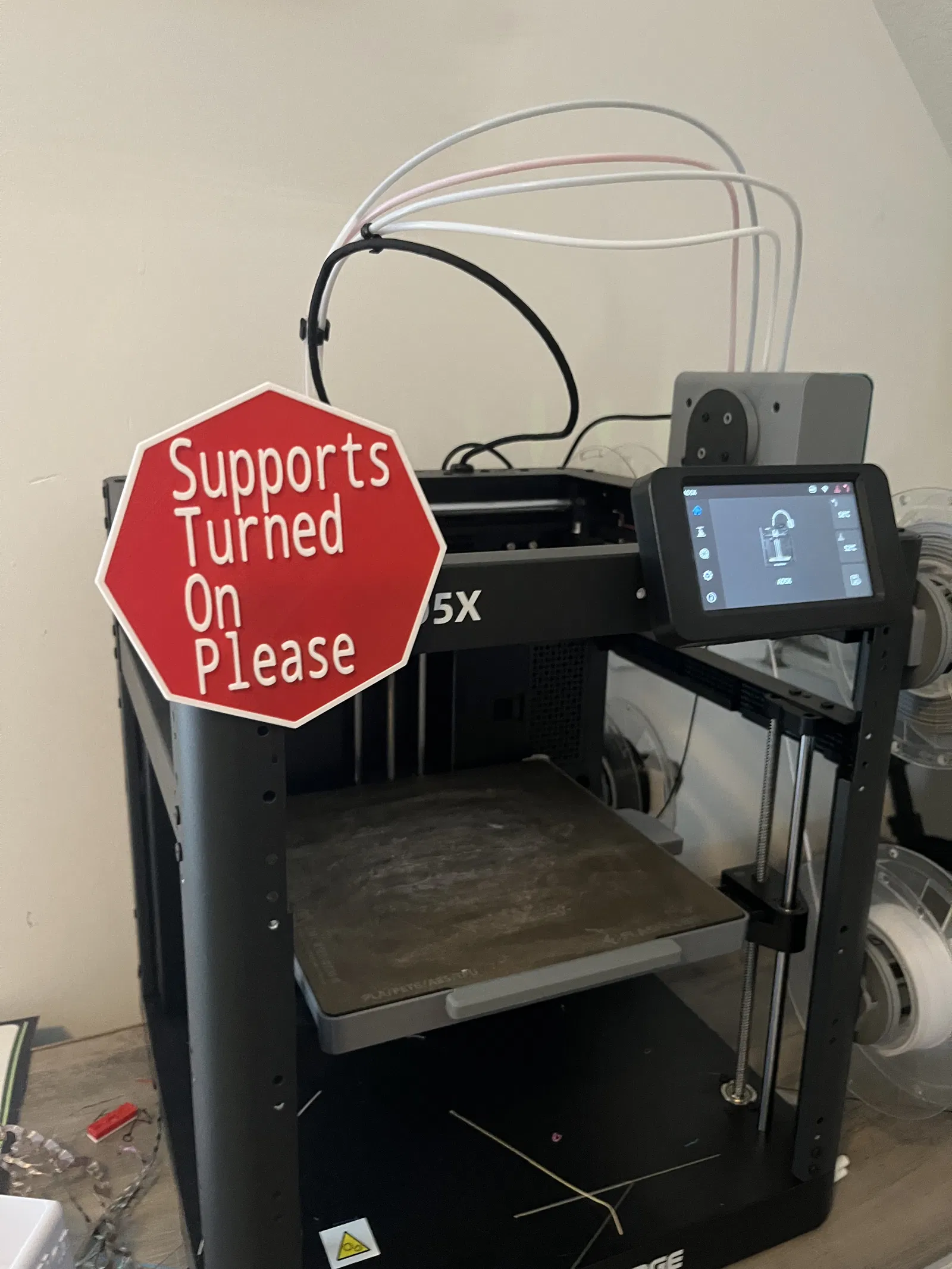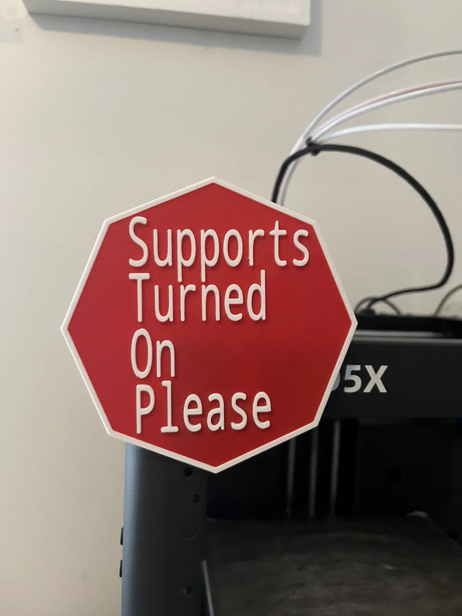 Biển báo nhắc nhở bật hỗ trợ (Supports Turned On Please) độc đáo cho máy in 3D