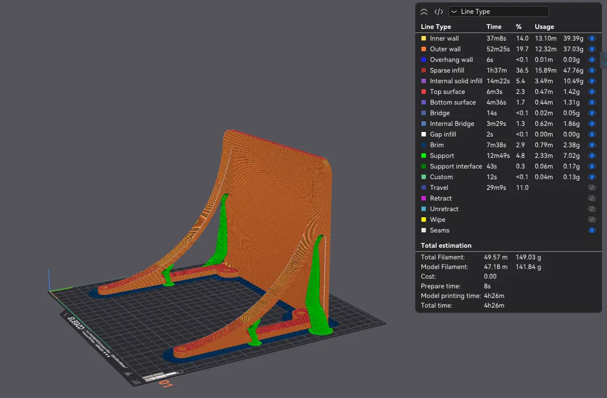 Khuyên dùng chất liệu PETG, tùy chỉnh mật độ in (infill) và độ dày tường (walls) dựa trên trọng lượng vật dụng bạn định đặt lên kệ. Mình đã dùng infill 15% và 3 lớp tường, hiện tại vẫn đang chịu lực tốt cho một vật nặng khoảng 2 pound (gần 1kg).