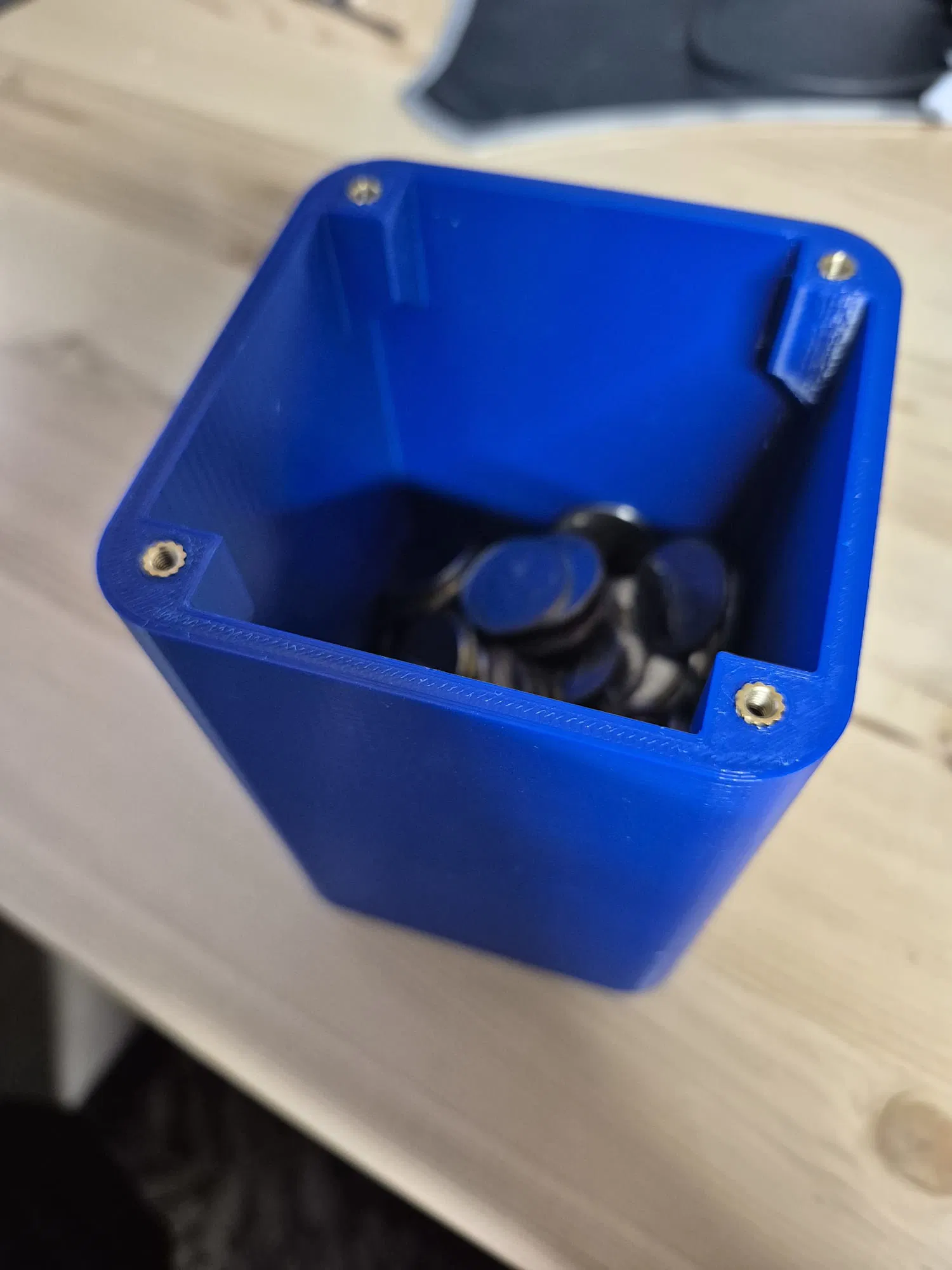 Bạn đang tìm kiếm một mẫu heo đất hoặc hộp đựng tiền lẻ vừa chắc chắn, vừa có thể tái sử dụng lâu dài? Mẫu thiết kế Coin Bank này mang đến giải pháp lưu trữ cực kỳ thông minh với cơ chế nắp vặn bằng ốc vít chuyên dụng. Thay vì phải đập vỡ như các loại heo đất truyền thống, bạn chỉ cần tháo 4 con ốc vít để mở hộp khi cần. Với thiết kế hình khối vuông vức, sản phẩm có độ bền cao, dễ dàng in ấn bằng các vật liệu phổ thông như PLA. Đây là dự án 3D printing tuyệt vời cho những ai yêu thích sự gọn gàng và bền bỉ. Sản phẩm đi kèm hướng dẫn chi tiết về phần cứng cần thiết như brass inserts và ốc vít M3, giúp bạn dễ dàng tự tay hoàn thiện một món đồ hữu ích ngay tại nhà.