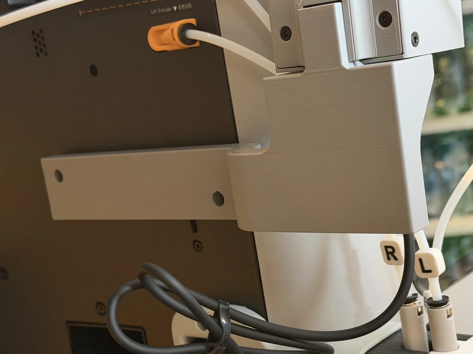 Mình không dùng được giá đỡ nguyên bản của bộ TPU Feed Assist Module từ Bambu Lab vì mình đã lắp hệ thống H2C/D Modular Nozzle Management System. Vì thế, mình phải tự thiết kế một cái riêng. Mẫu này in rất dễ, không cần support. Mình khuyên dùng 5 tường (walls) để đảm bảo độ chắc chắn. Bạn hãy gắn nó vào bằng hai ốc vít ST3x12 có sẵn trong bộ kit nhé.