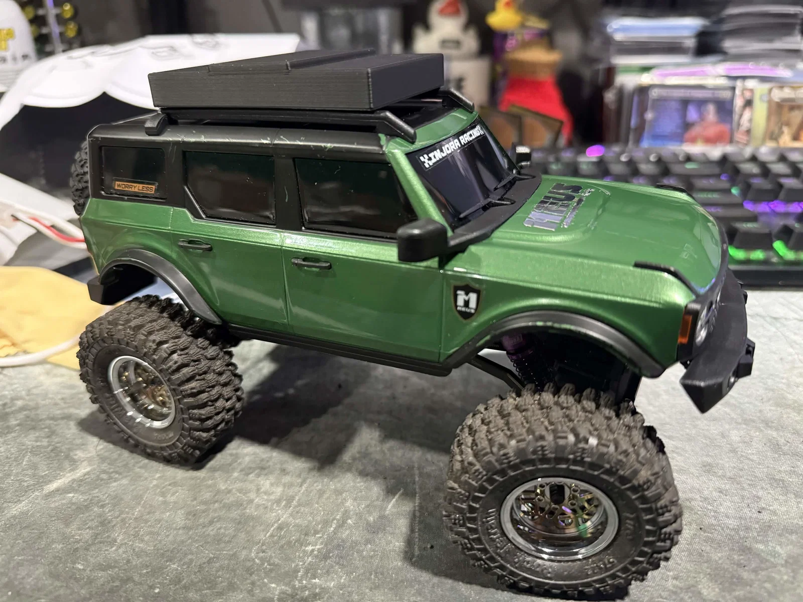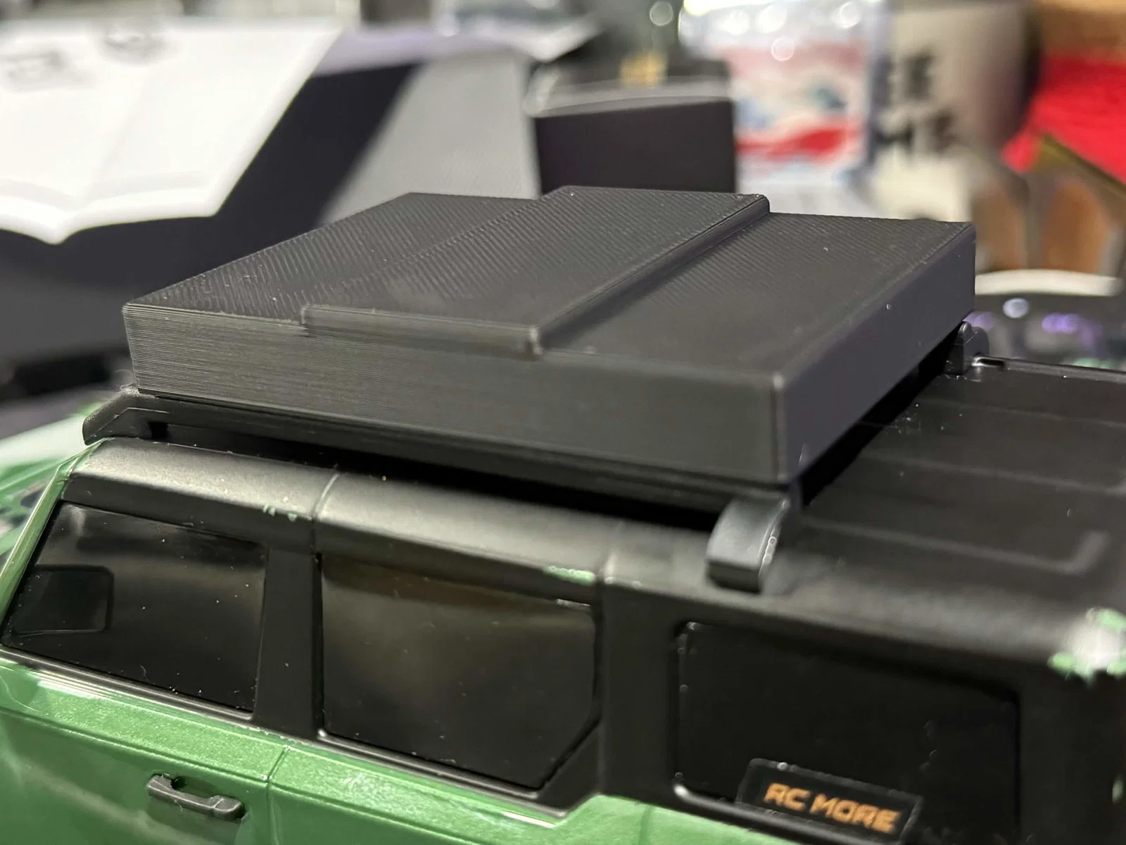 Đây là mẫu thiết kế đầu tiên mình tự tay thực hiện từ đầu. Mình đã sử dụng thông số kích thước thực tế từ mẫu Thule Approach L và thu nhỏ lại đúng tỷ lệ 1/24. Mình thiết kế cái này cho chiếc SCX24 Bronco của mình. Mình thấy nó trông rất ngầu và thành phẩm cuối cùng nhìn cực kỳ ưng ý. Phần đế được thiết kế phẳng. Để lắp đặt, mình đã khoan một lỗ mồi nhỏ và tận dụng lại các ốc vít vốn có của các phụ kiện đi kèm theo xe để gắn vào các lỗ chờ sẵn.