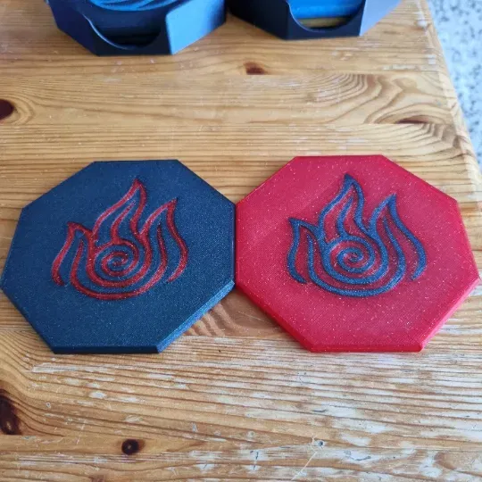 Không phải tất cả chúng ta đều có thể điều khiển nước để làm sạch cà phê đổ trên bàn, vì vậy bạn sẽ cần những đế lót - bộ bốn đế lót này được dựa trên các yếu tố Bending của vũ trụ Avatar: The Last Airbender/Legend of Korra. Để giữ mọi thứ gọn gàng, tôi cũng đã bao gồm một giá đơn giản để bạn có thể giữ các đế lót khi không sử dụng. ---