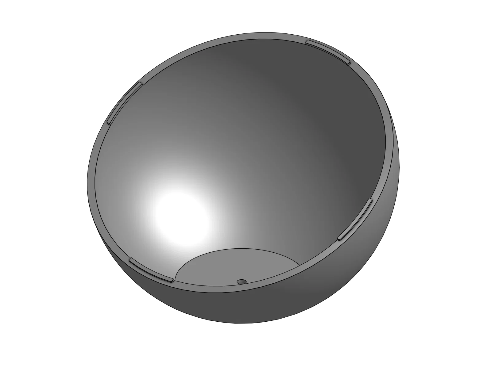 Mình đã dán một dải đèn LED lên thành trong của hình cầu và đặt một bộ ESP32 vào trong đó để điều khiển ánh sáng ambient cho phòng khách thông qua Home Assistant. Ở dưới đáy có một lỗ hổng cùng một rãnh để luồn dây USB-C (đã cắt bỏ đầu kết nối). Rãnh này không đủ sâu để dây nằm phẳng hoàn toàn, nên mình đã gắn thêm chân đế cao su ở mặt dưới.