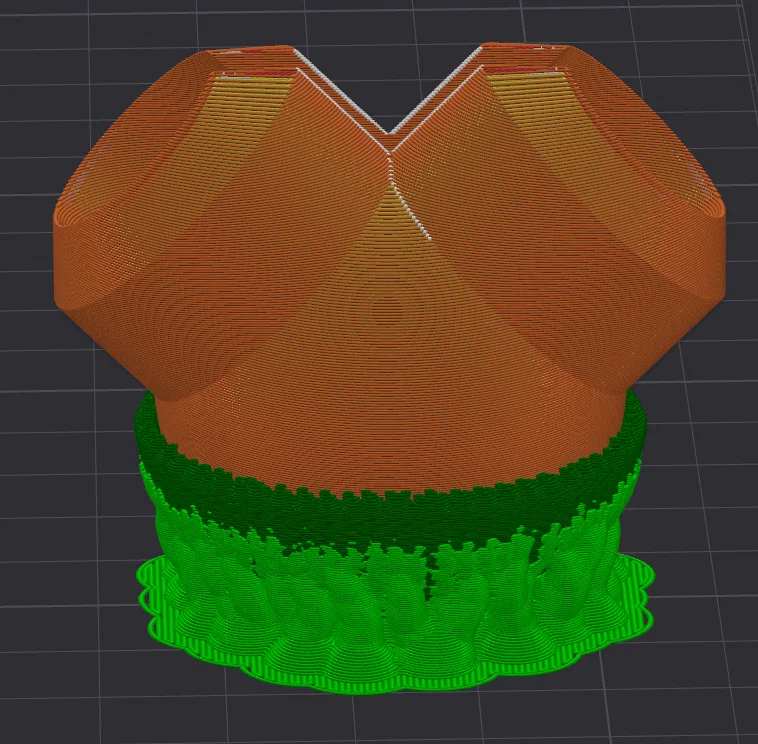 Được in bằng nhựa TPU 95A với thiết lập 3 lớp vỏ (walls) và 10% mật độ lấp đầy (infill) dạng gyroid. Như hầu hết các bản in TPU khác, độ mềm dẻo của sản phẩm có thể điều chỉnh được thông qua tỉ lệ infill.