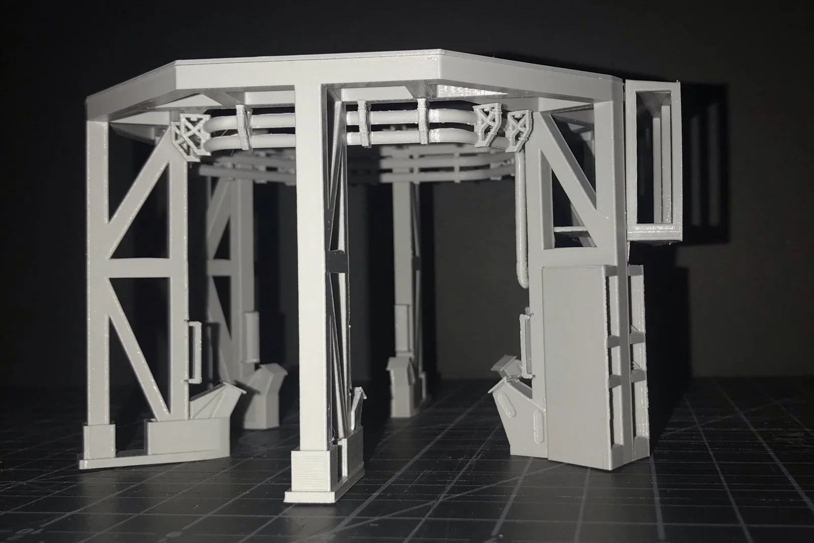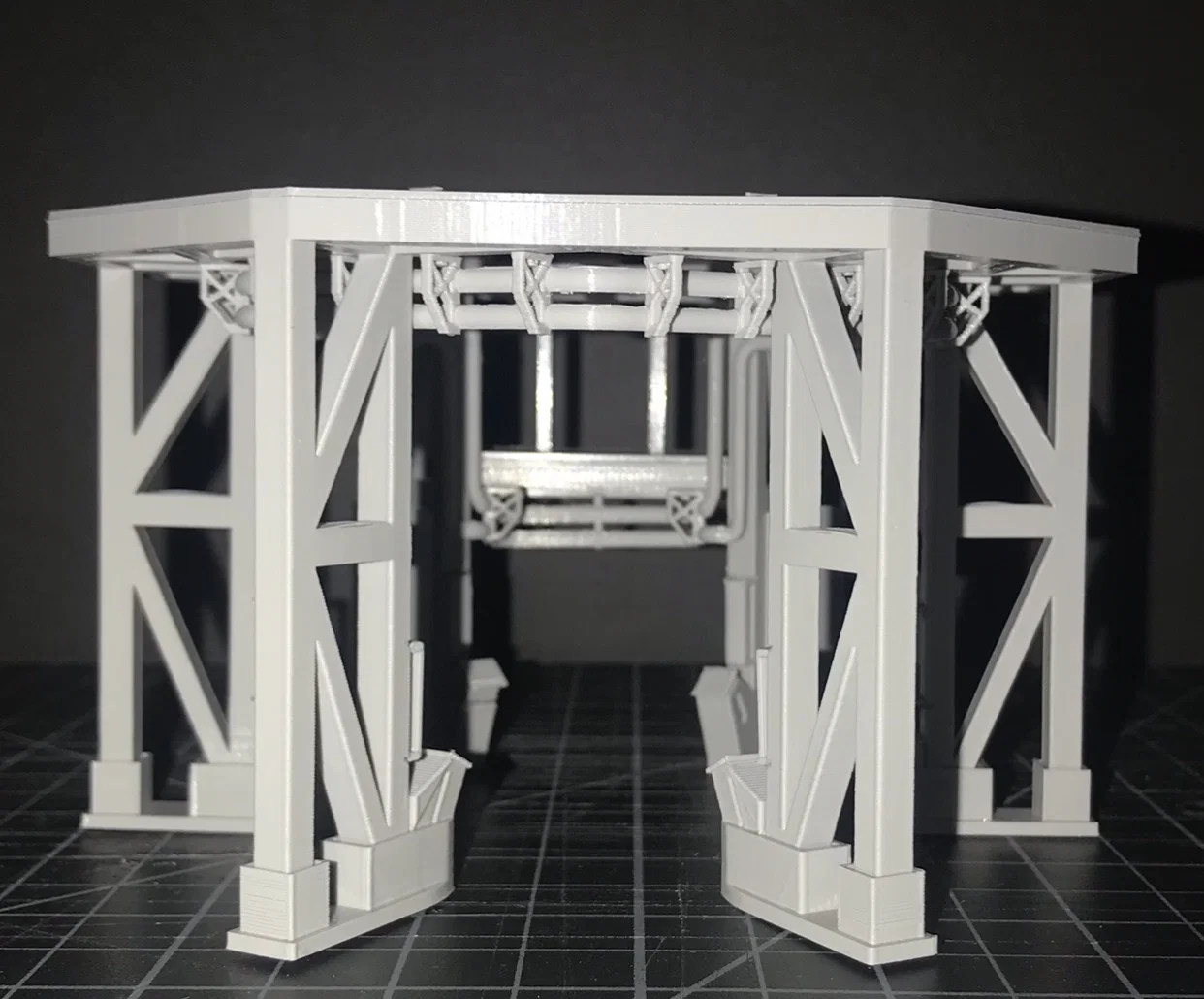 Mô hình tỉ lệ 1:100 này tái hiện lại bệ phóng cận quỹ đạo (Sub-orbital stand) của SpaceX từng được sử dụng trong các đợt thử nghiệm Starship SN thời kỳ đầu. Dự án này là sản phẩm hợp tác giữa tôi và nhà thiết kế Arco Hollestelle vào năm 2020.