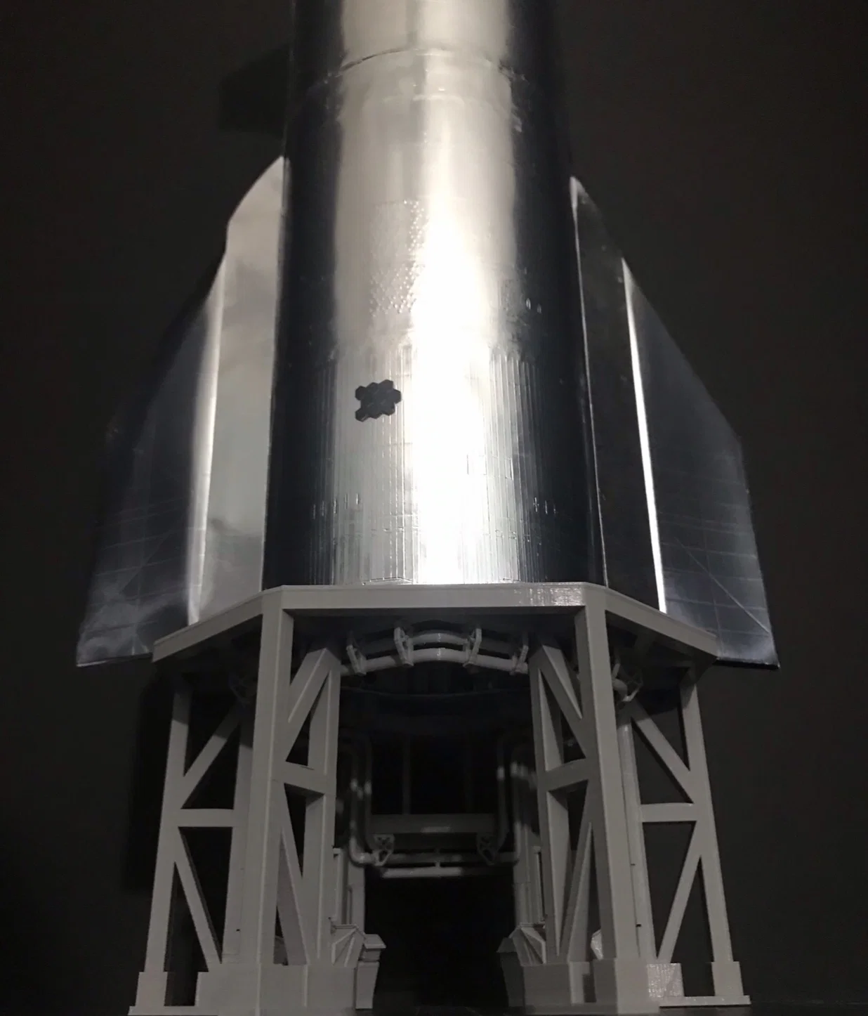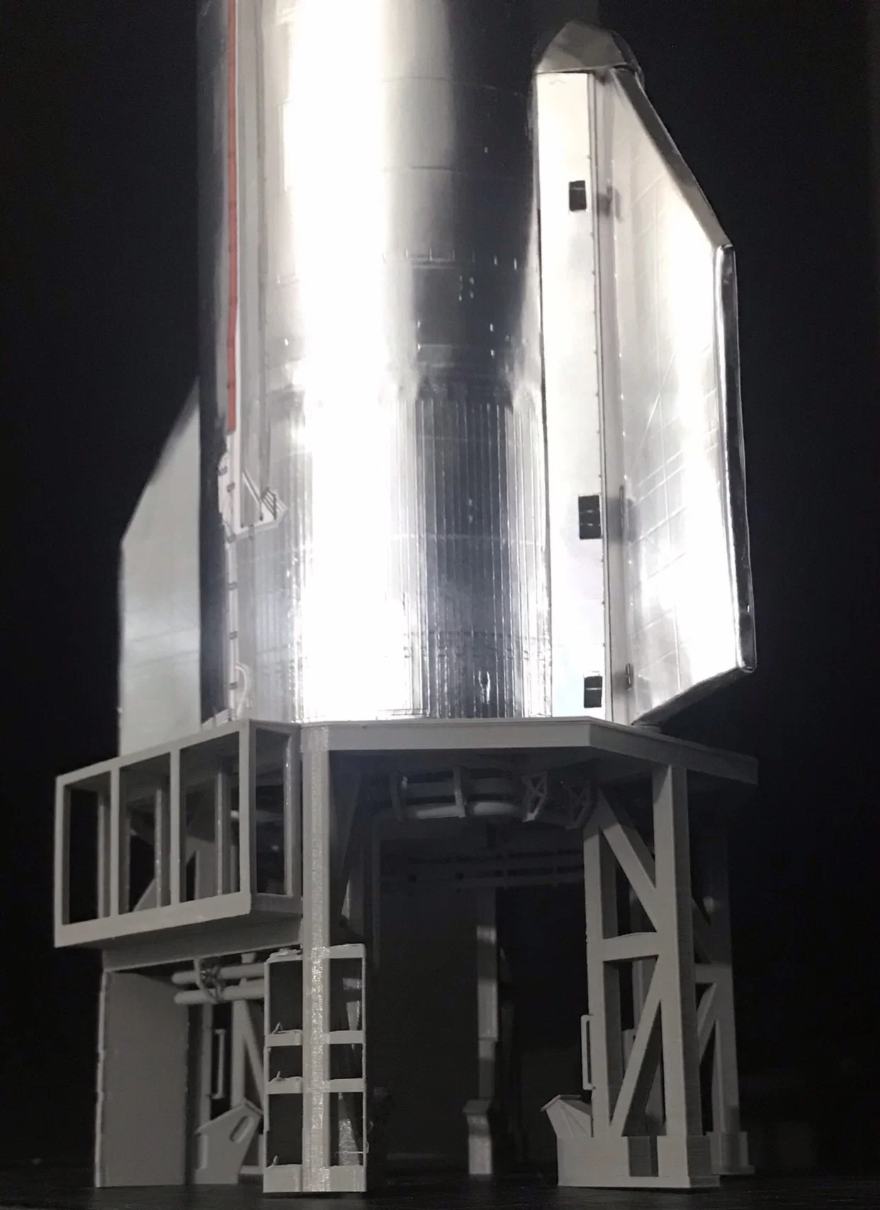 Mô hình giá đỡ cận quỹ đạo dành cho các đợt thử nghiệm Starship SN đầu tiên của SpaceX. Sản phẩm hợp tác năm 2020 giữa AXM và Arco Hollestelle, được thiết kế tỉ mỉ với nhiều chi tiết lắp ráp đi kèm.