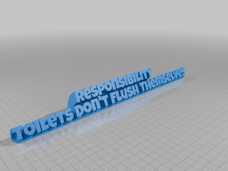 Bạn đang tìm kiếm một vật phẩm trang trí bàn làm việc hoặc nhà vệ sinh mang thông điệp đầy tính nhắc nhở và hài hước? Mô hình 3D "Responsibility: Toilets Don't Flush Themselves" (Trách nhiệm: Bồn cầu không tự dội nước được) chính là lựa chọn độc đáo dành cho bạn. Đây không chỉ là một sản phẩm in 3D bình thường, mà là một lời nhắc nhở thực tế về trách nhiệm cá nhân trong cuộc sống hàng ngày, được thể hiện qua phong cách chữ nổi sắc nét và hiện đại.