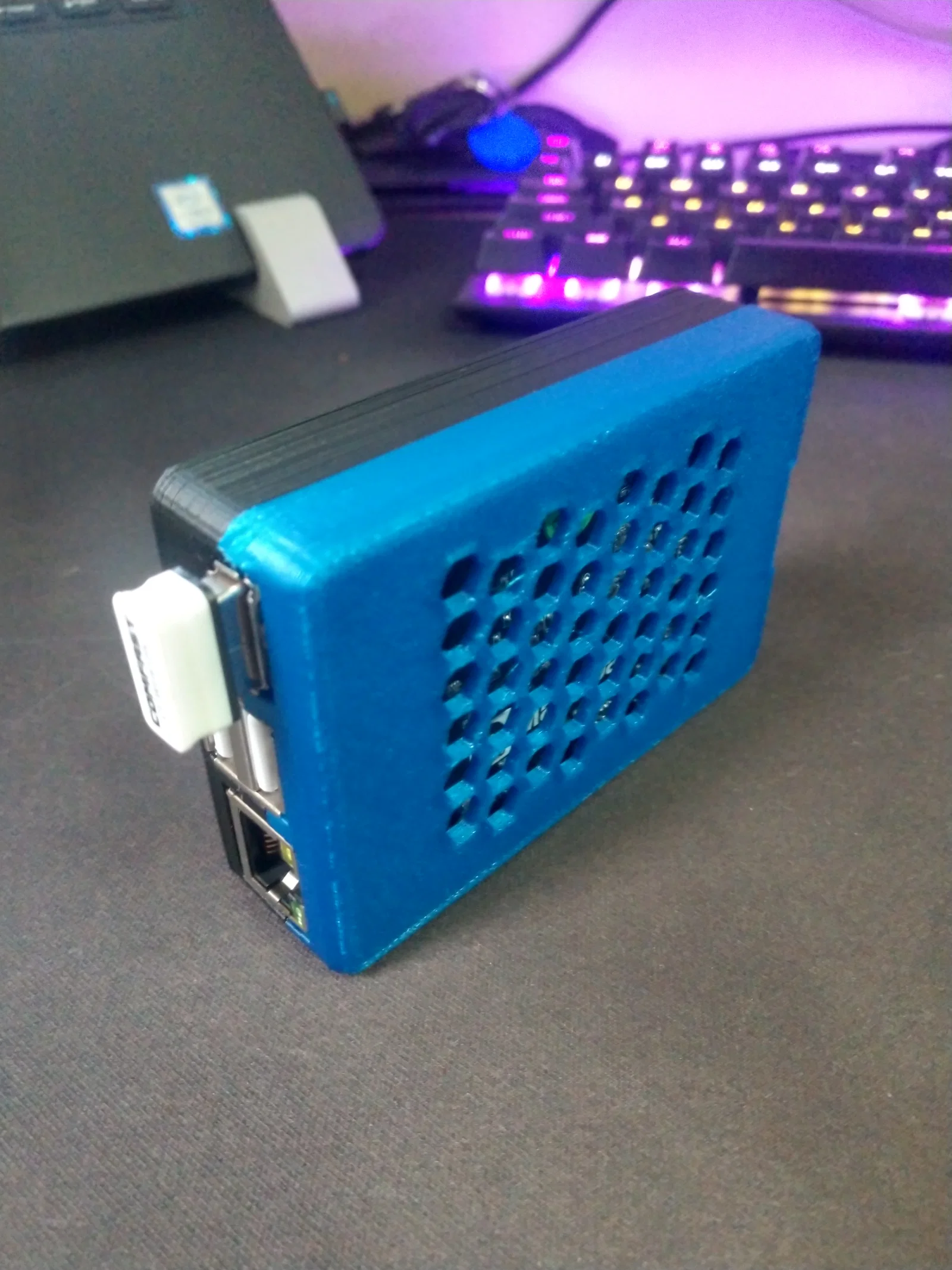Điểm đặc biệt của vỏ hộp này chính là cơ chế lắp ráp dạng snap-fit (khớp gài) thông minh. Anh em sẽ không cần phải dùng đến ốc vít phức tạp mà vẫn có thể cố định bo mạch một cách chắc chắn bên trong. Các đường cắt được thiết kế cực kỳ chính xác cho các cổng kết nối như Ethernet, USB, giúp việc cắm dây trở nên dễ dàng mà không bị cản trở. Phần nắp được thiết kế thông thoáng với các lỗ thông gió dạng tổ ong, giúp tản nhiệt hiệu quả cho bo mạch trong quá trình vận hành liên tục.