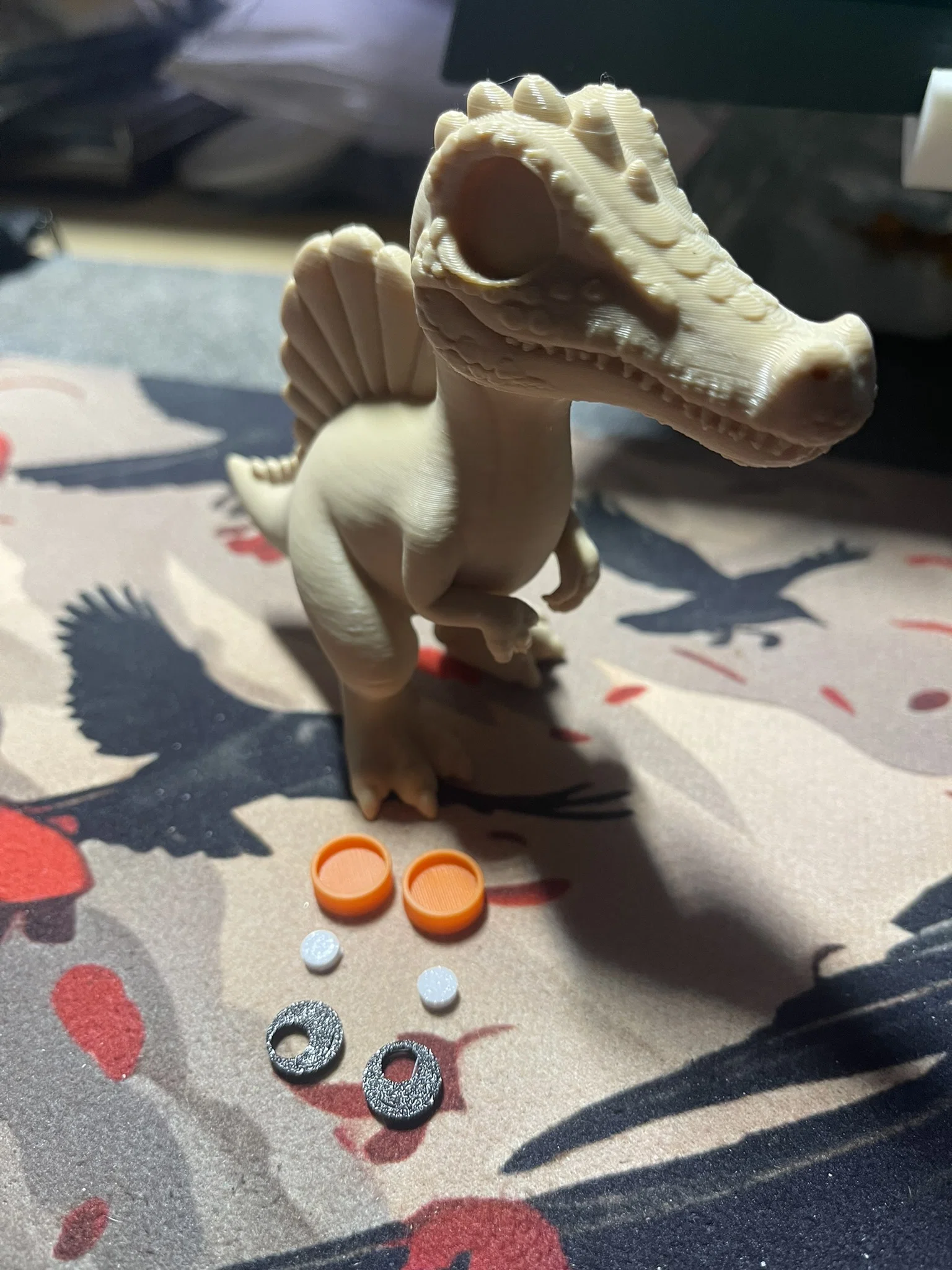 Mang chú khủng long Spinosaurus Sammy đáng yêu về bàn làm việc của bạn! Mô hình theo phong cách hoạt hình (chibi) này cực kỳ dễ in với máy một màu, không cần bộ phối màu phức tạp. Thiết kế nhỏ gọn, bắt mắt và dễ dàng lắp ráp cho mọi người.