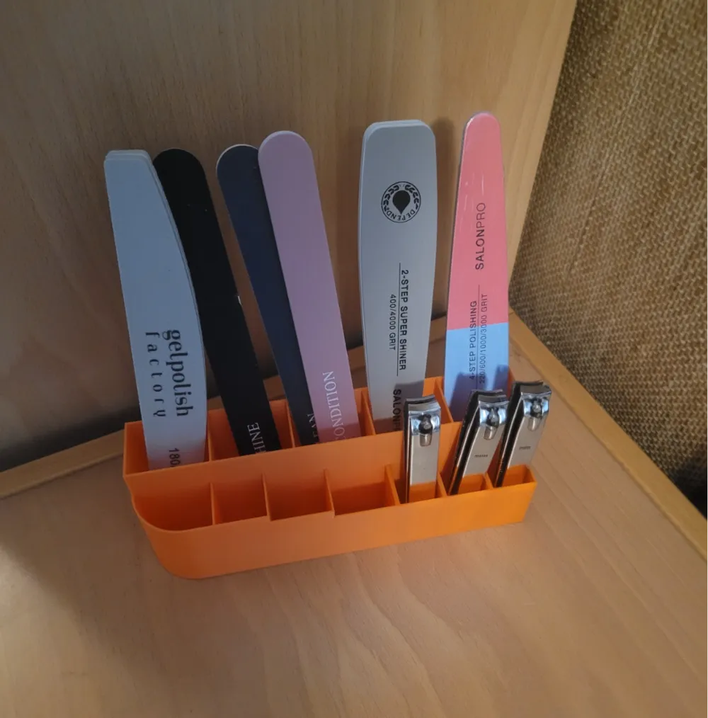 Bạn có bao giờ cảm thấy đau đầu vì bàn trang điểm lúc nào cũng bừa bộn với hàng tá cây dũa móng, kềm cắt da hay các dụng cụ làm đẹp nhỏ lẻ nằm lung tung khắp nơi không? Mẫu thiết kế khay đựng đa năng này chính là giải pháp hoàn hảo để giúp bạn giải quyết vấn đề đó. Với kiểu dáng nhỏ gọn và các ngăn được phân chia khoa học, chiếc khay in 3D này giúp bạn cất giữ mọi cây dũa móng tay yêu thích một cách gọn gàng, giúp bàn làm việc của bạn trở nên ngăn nắp và chuyên nghiệp hơn hẳn.